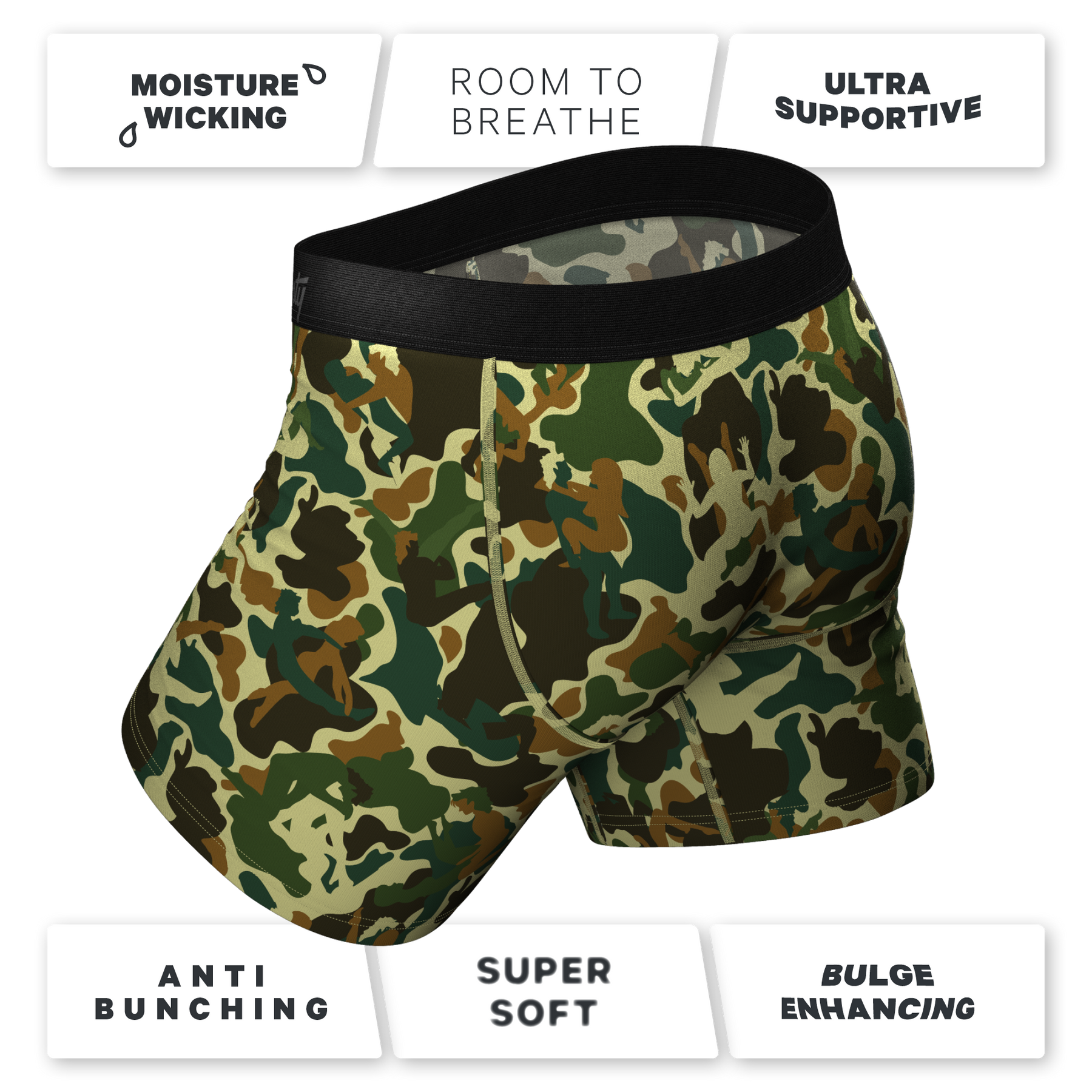 Literally...where are these Ball Hammock® Pouch underwear. I don't see them. Is this some kind of a sick joke? Are you really gonna spend your hard earned $$ on nothing? What am i missing here. If you do manage to see what is on these camouflage Ball Hammock®...be warned, you probably shouldn't buy them for a son, father, or platonic friend. (;