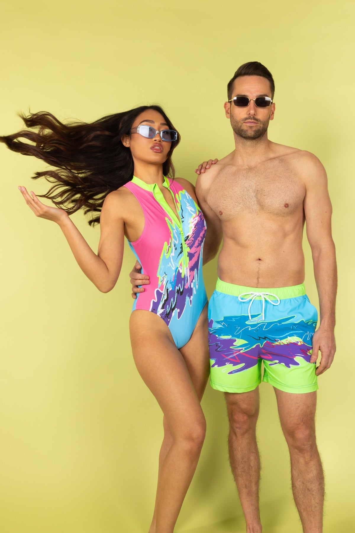 The Snack Shack | Neon Retro Zip Up One Piece Swimsuit