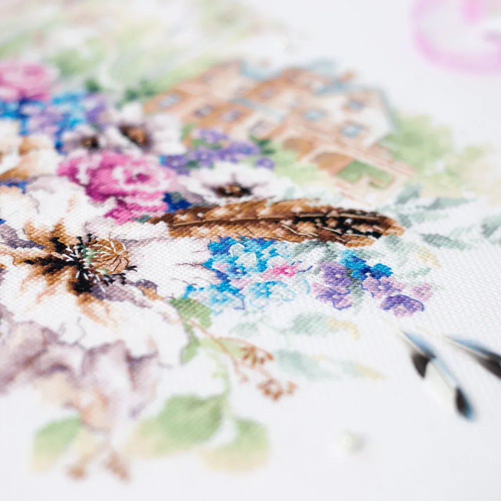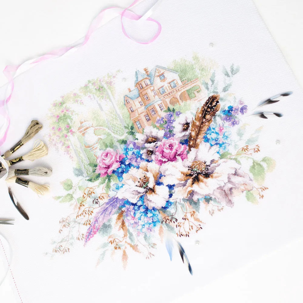 Kit contains: Fabric Zweigart Aida 14 (col.100, white), Threads: GAMMA (100% cotton), Number of Colors:48. Embroidery instructions in English, German, French and Spanish; color symbol scheme. Dimensions: 38*30cm / 14,96*11,81inches