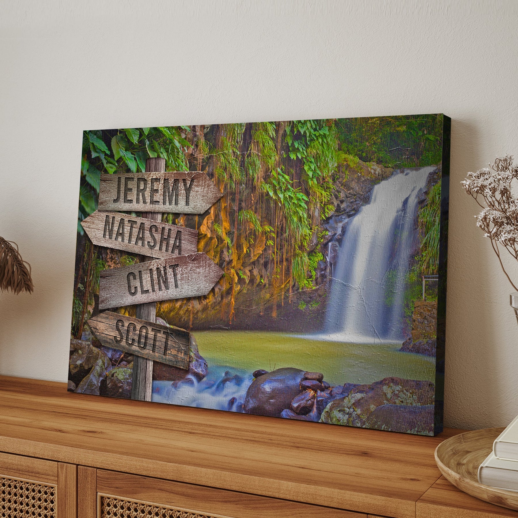 You can customize the Family Names canvas print with your choice of words and names, as well as the image you want in the background. The fonts used and the color scheme are also customizable, so you can have something entirely different.