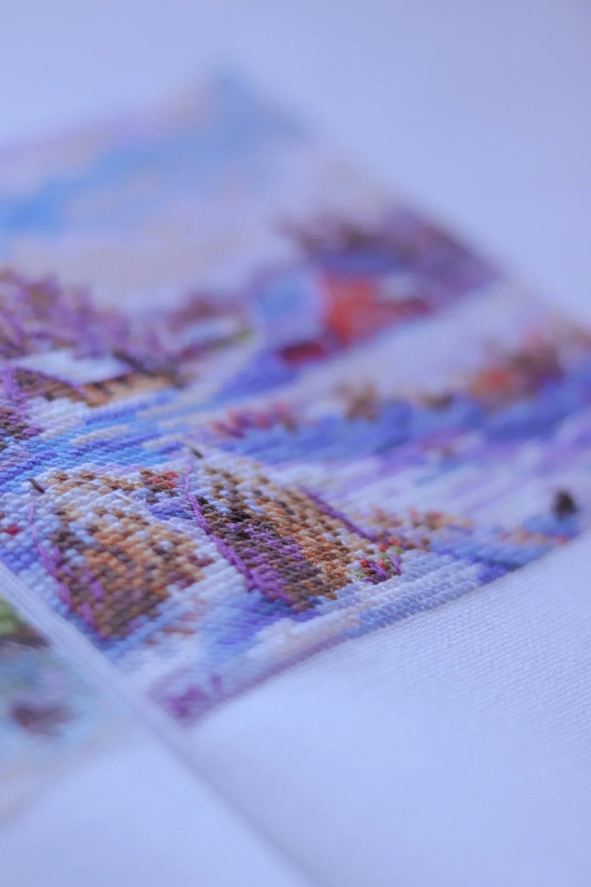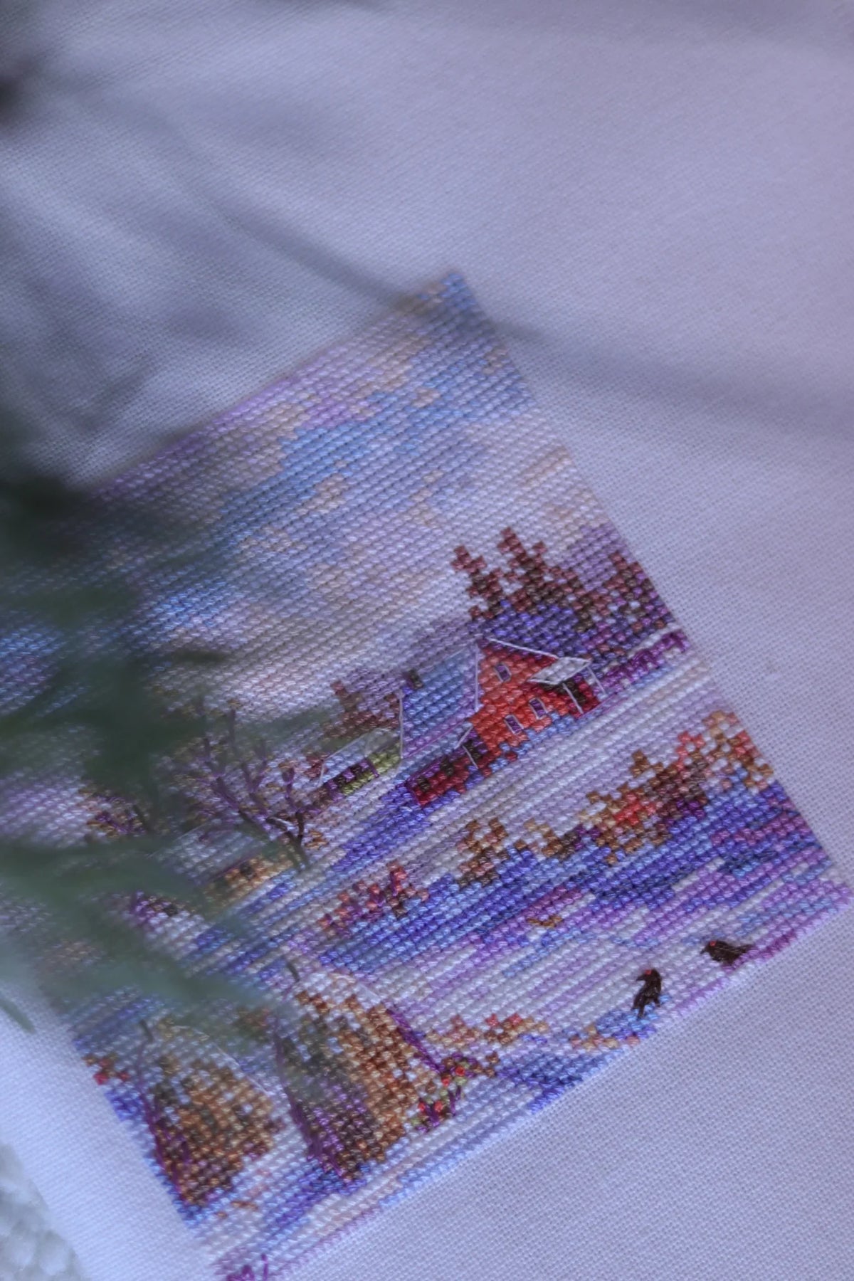 Kit contains: Canvas Zweigart Aida 16, white, DMC threads 31 colors, John James needles. The schema has colour symbols. There are two versions of schema with and without backstitches in each kit. 11,5x11,5 cm / 4,53x4,53 inches