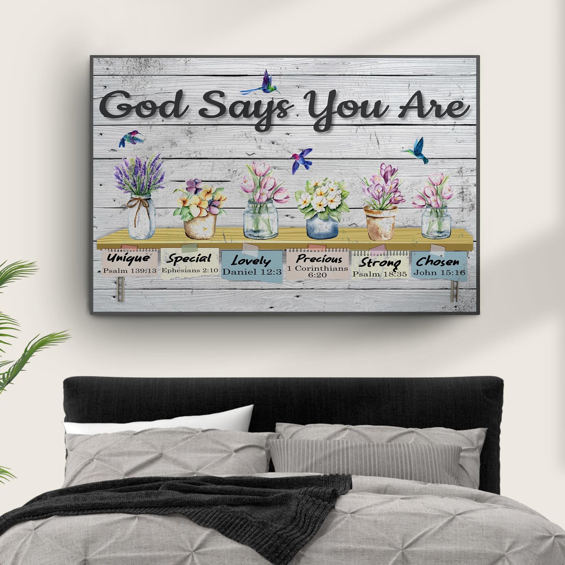 God Says You Are Sign is the perfect reminder to find faith in oneself. It captures the essence of God's message and conveys the power of confidence, strength and knowledge - qualities we can all use more of judging by our current day-to-day lives. Not only is God Says You Are sign a reminder to stay faithful, but it is also an inspirational boost that stirs us to look beyond our circumstances and believe and trust God! What a beautiful way to show someone you care - with God Says You Are Sign.