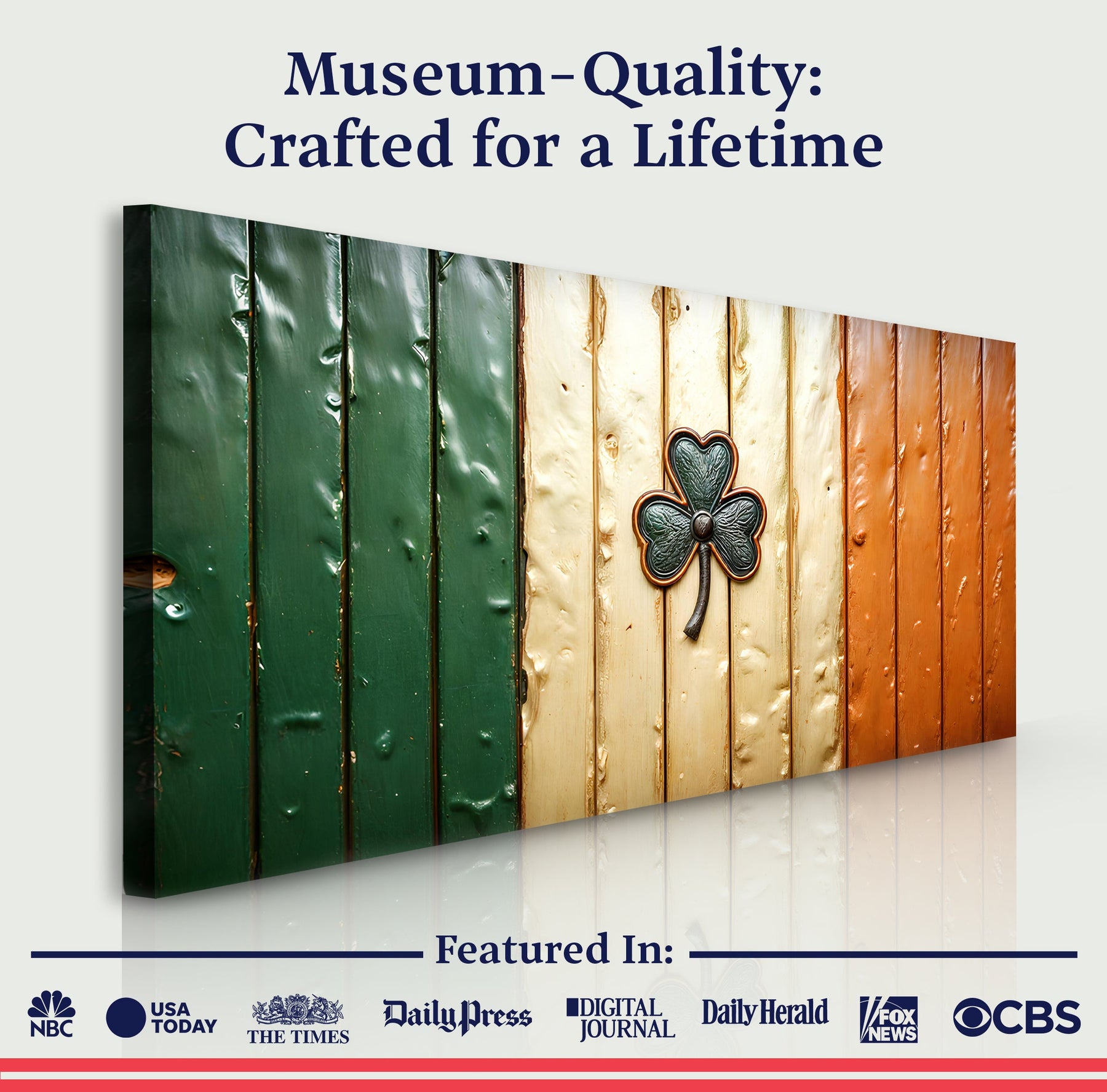 Celebrate Irish pride and tradition with this stunning canvas wall art, featuring the Irish flag colors in a rustic wooden design, beautifully accented by a classic shamrock symbol in the center. This piece exudes a warm, vintage charm, making it a perfect addition to any home, pub, or space that embraces Irish culture.