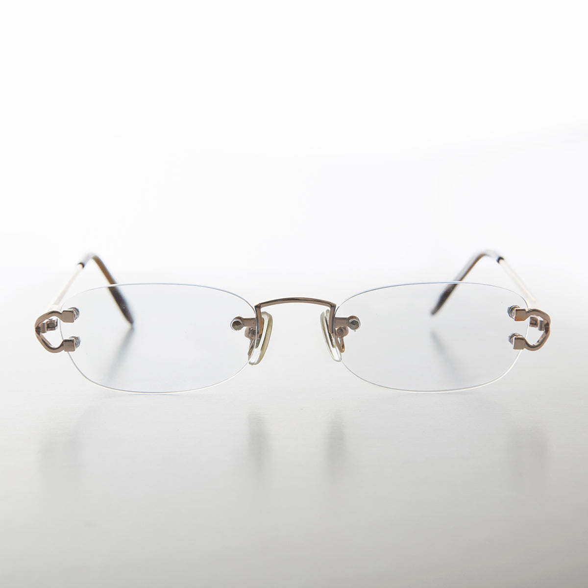 This rimless reading glass feature a lightweight pink lens and comfort spring temples.