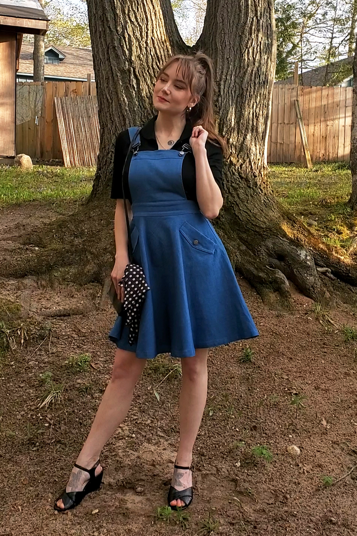 This retro cutie is the "it" piece! Soft denim with adjustable buckled straps - try them crisscrossed for a super playful look!