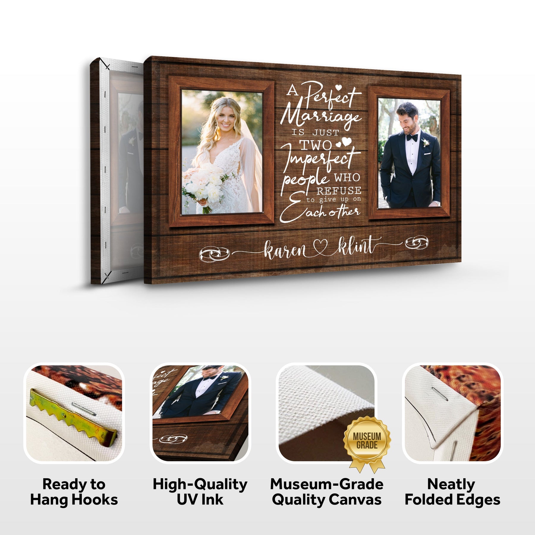 Its beautiful design and clever phrase make it a great conversation starter or simply a unique wall accent to marvel at. Hang this A Perfect Marriage Is Just Two Imperfect People Wall Art in your bedroom or living room, or even give it away as a quirky engagement gift! Show off your sense of fun and keep your marriage going as strong as ever with this cute sign!