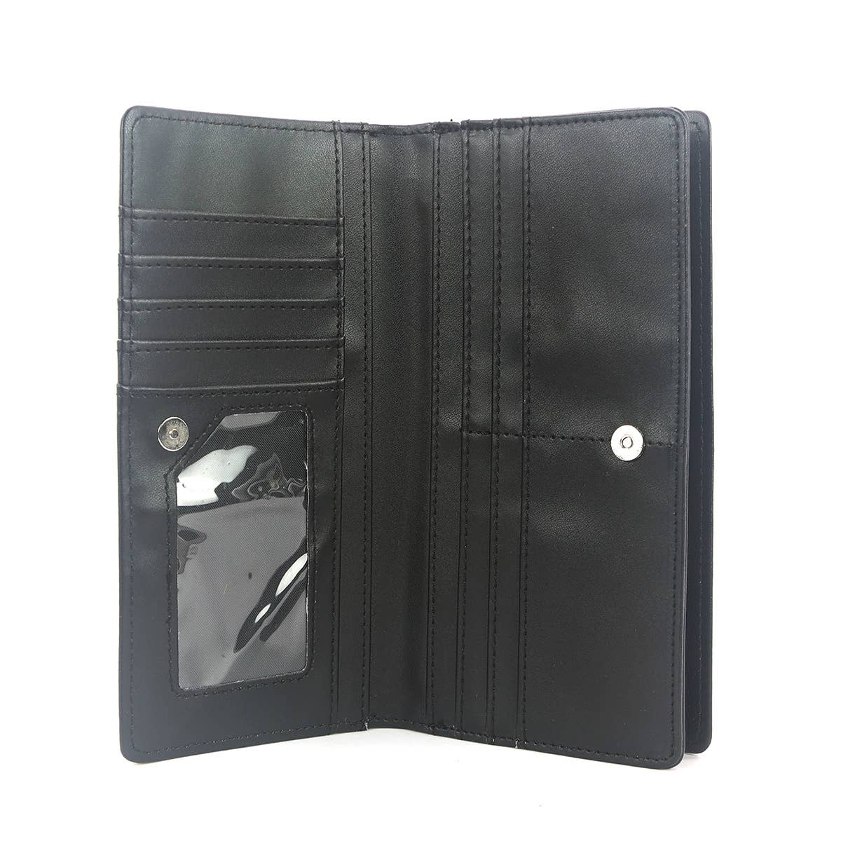Keep your essentials organized with the playful Alice in Wonderland Tea Party wallet! Made from quality vinyl, it features a unique magnetic clasp and a top zippered closure for secure storage. Inside, you'll find 10 pockets designed to hold IDs, cards, and bills, making it both fun and functional for everyday use.