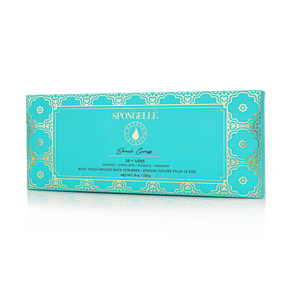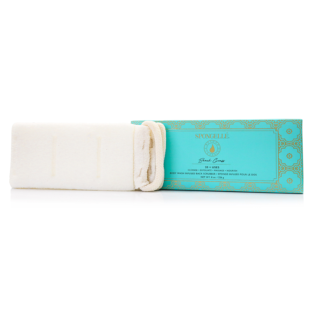 The Beach Grass Body Wash Infused Back Buffer is designed to tackle hard-to-reach areas. The extended length of this back scrubber cleanses and exfoliates with stretchable pull straps and a soft sponge design. Formulated with skin-softening natural ingredients and extracts of yuzu, edelweiss, and vetiver with aquatic, woody, and spicy notes to cleanse, exfoliate, massage and tone. Savor the relaxing scent of Beach Grass with every shower.