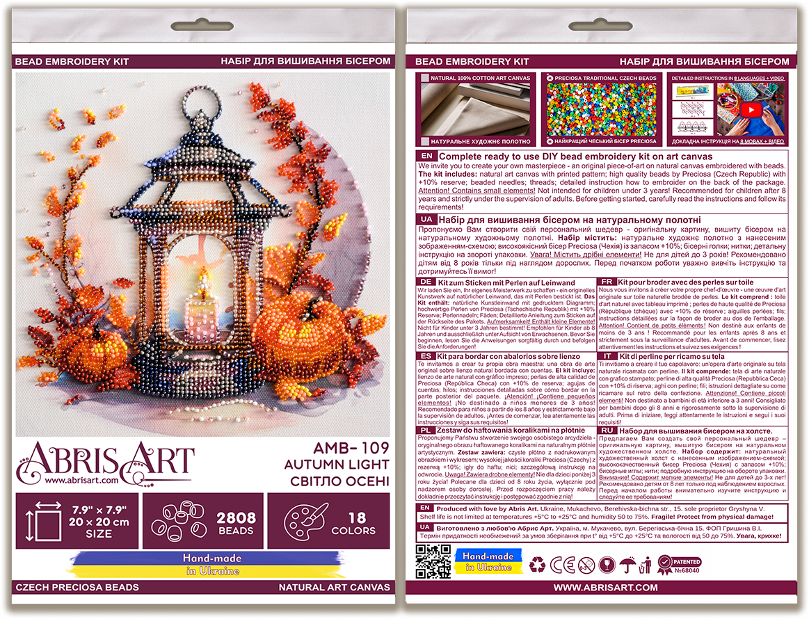 In each carefully assembled box Mid-sized bead embroidery kit Autumn light (Deco Scenes) after purchase and delivery you will find: a large piece of natural art canvas with a printed image-scheme (fabric for embroidery) larger than the size of the picture - 200 x 200 mm. - with enough stock to make it convenient to embroider and design the finished picture! The world's best beads Preciosa Ornela (Czech Republic), with "stock" - more than 2808 beads, high-quality bead needles from Japan , and most importantly - detailed instructions, the scheme for beadwork with a key, specially developed by our designers for each plot separately and already applied to the canvas!