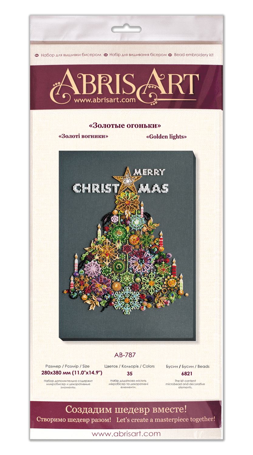 Kit contains: In each carefully assembled box Bead Embroidery Kit Golden lights (Winter tale) after purchase and delivery you will find: a large piece of natural art canvas with a printed image-scheme (fabric for embroidery) larger than the size of the picture - 380 x 280 mm. - with enough stock to make it convenient to embroider and design the finished picture! The world's best beads Preciosa Ornela (Czech Republic), with "stock" - more than 6821 beads, high-quality bead needles from Japan , and most importantly - detailed instructions, the scheme for beadwork with a key, specially developed by our designers for each plot separately and already applied to the canvas! It is so convenient and clear that even a person who wants to try himself in beadwork for the first time, and buy this kit - will understand everything in 5 minutes! The set is additionally completed with Preciosa beads #13 - microbeads - 13 colors, a needle for embroidery with microbeads, decorative stones - glass - hemisphere - 3 types (11 pcs.). The possibility of gallery design of embroidered work is provided (without baguette and passepartout). Beads 35 colours. Dimensions 28*38cm / 11,02*14,96in. Made in Ukraine.