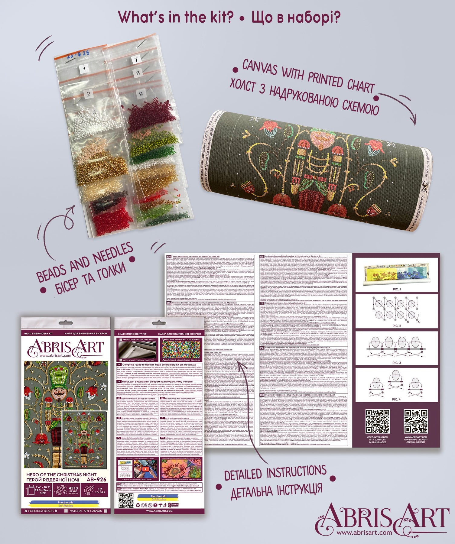 In each carefully assembled box Main Bead Embroidery Kit Hero of the Christmas Night (Deco Scenes) after purchase and delivery you will find: a large piece of natural art canvas with a printed image-scheme (fabric for embroidery) larger than the size of the picture - 260 x 195 mm. - with enough stock to make it convenient to embroider and design the finished picture! The world's best beads Preciosa Ornela (Czech Republic), with "stock" - more than 4513 beads, high-quality bead needles from Japan , and most importantly - detailed instructions, the scheme for beadwork with a key, specially developed by our designers for each plot separately and already applied to the canvas!