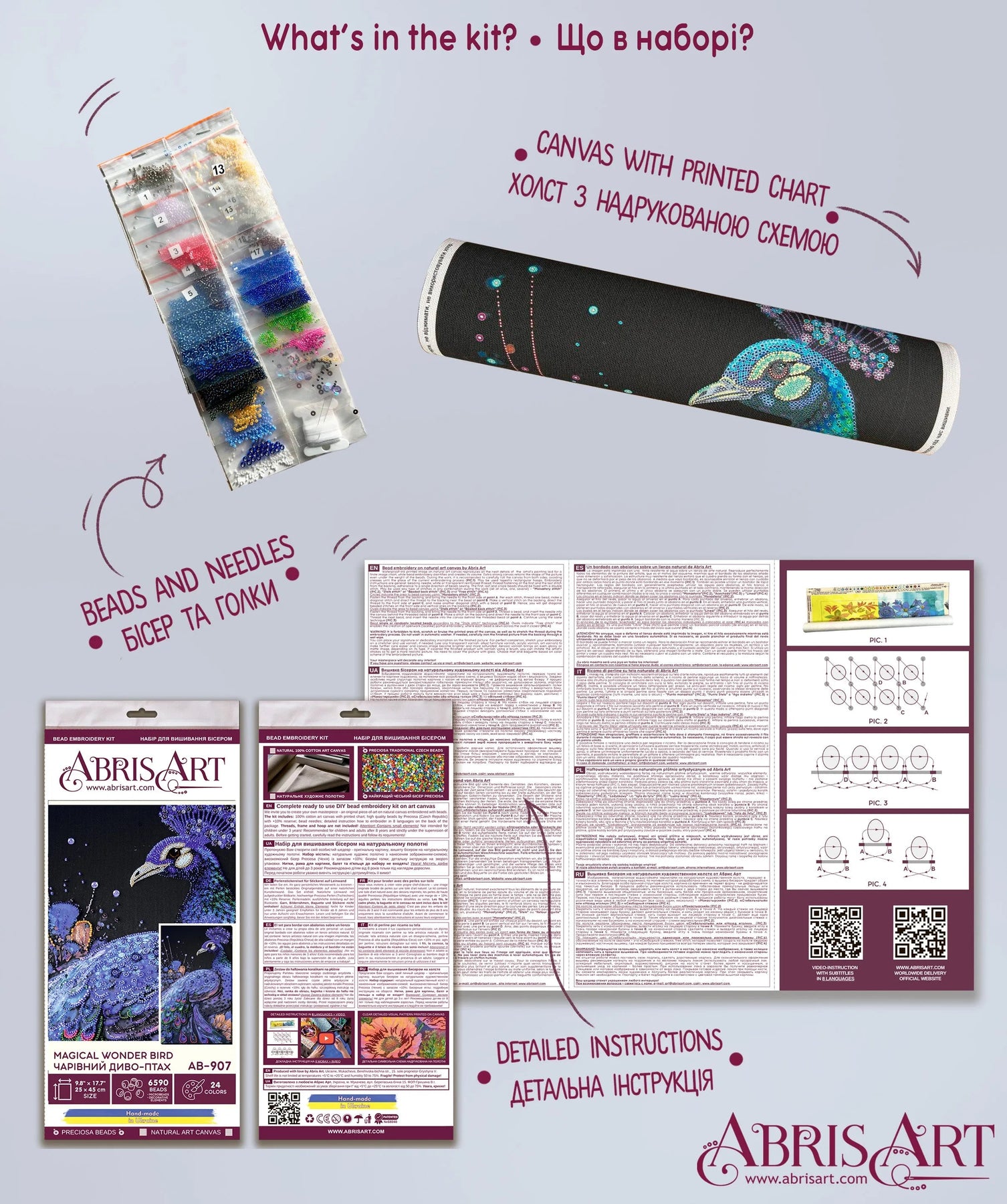 In each carefully assembled box Main Bead Embroidery Kit Magical wonder bird (Deco Scenes) after purchase and delivery you will find: a large piece of natural art canvas with a printed image-scheme (fabric for embroidery) larger than the size of the picture - 450 x 250 mm. - with enough stock to make it convenient to embroider and design the finished picture! The world's best beads Preciosa Ornela (Czech Republic), with "stock" - more than 6590 beads, high-quality bead needles from Japan , and most importantly - detailed instructions, the scheme for beadwork with a key, specially developed by our designers for each plot separately and already applied to the canvas! The set is additionally completed with Preciosa beads No. 6 - beads (22 pcs.), Preciosa beads No. 13 - microbeads - 11 colors, a needle for embroidery with microbeads, decorative elements - sequins - 2 types (25 pcs.).