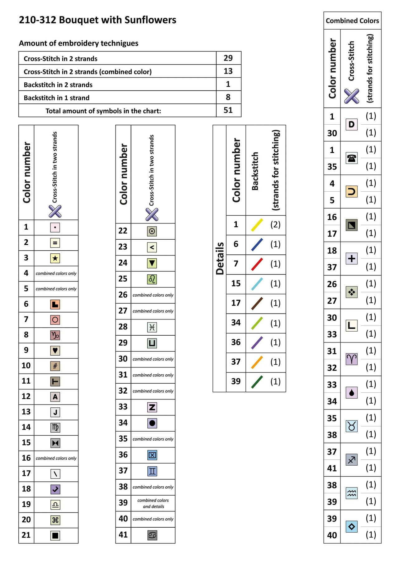 Kit contains: Fabric Zweigart Aida 14 (col.100), Threads: GAMMA (100% cotton), Number of Colors:41. Embroidery instructions in English, German, French and Spanish; color symbol scheme. Dimensions: 26*19cm / 10,24*7,48inches