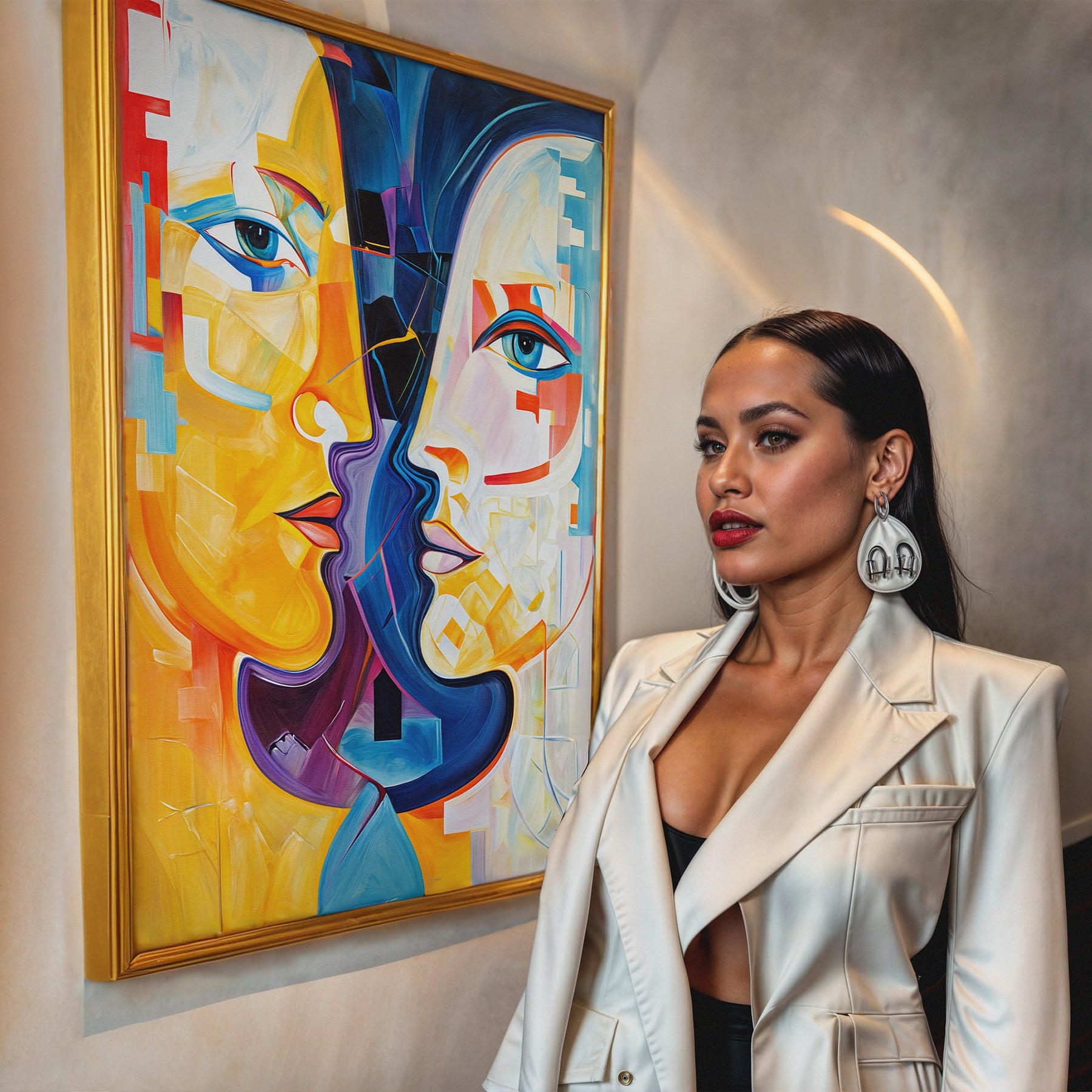 This artwork from the talented artist captures the vibrant essence of interconnected spirits through bold, dynamic strokes. Perfect for adding a touch of modern sophistication, this piece draws attention and sparks conversation, making it an ideal centerpiece for your living room or office.