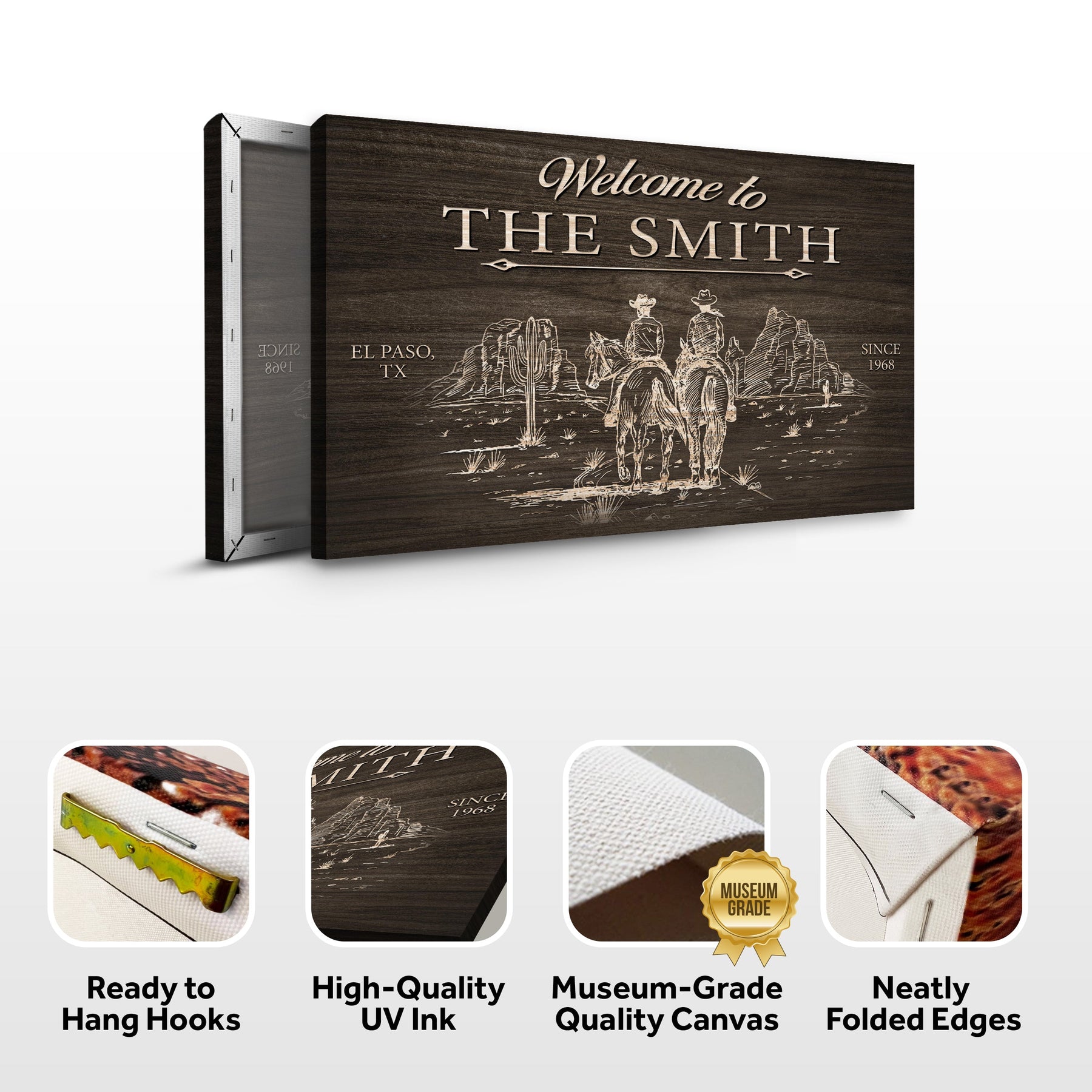 Welcome visitors in true Western style with our customizable Cowboy Welcome Sign. Crafted with attention to detail, this high-quality canvas art piece is the perfect addition to any rustic or country-themed decor.