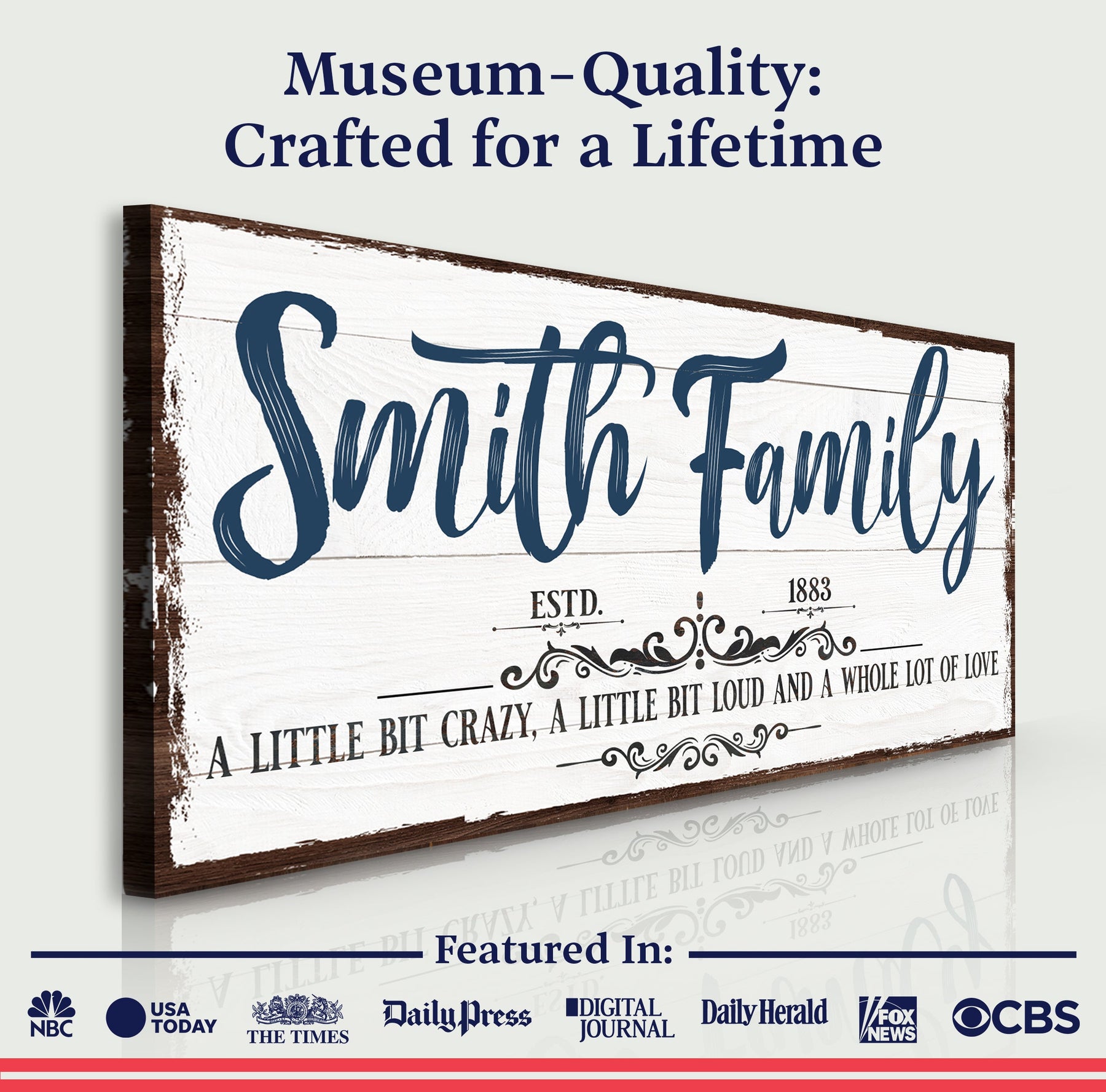 Custom Name Sign Canvas | Personalized Last Name Sign | Family A Little Bit Of Crazy Home Decor | Wedding Anniversary Gift | This is Us Sign (ETSY)