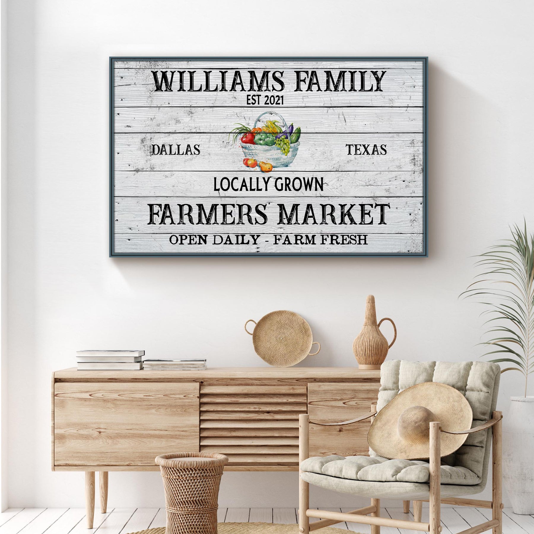 If you're looking for a sign made with care and love—and not just some generic store-bought piece—then this Custom Locally grown Farmers Market Wall Art is just what you need.