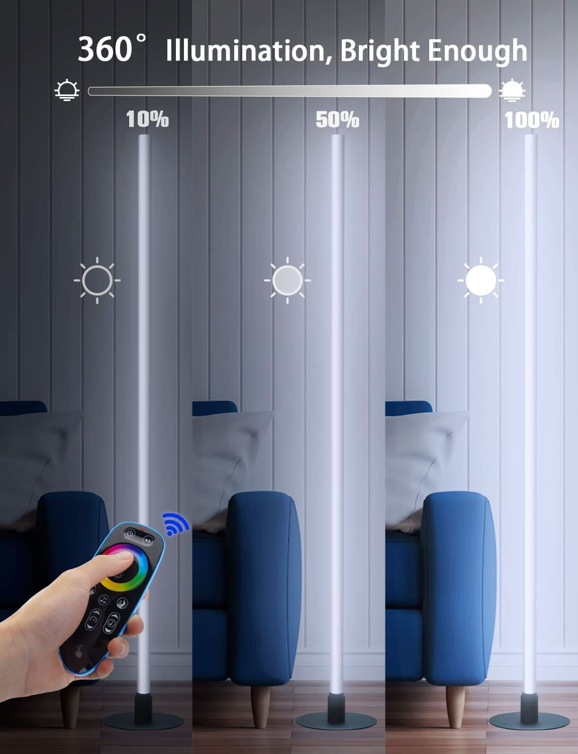 Nordico led corner lamp lamp is energy-efficient with 15W low-power and 50,000 hours service life. This minimalist RGB floor lamp fits any style home decor and its space saving design ( base diameter 180mm/7in) allows to be put at sofa or narrow corners.