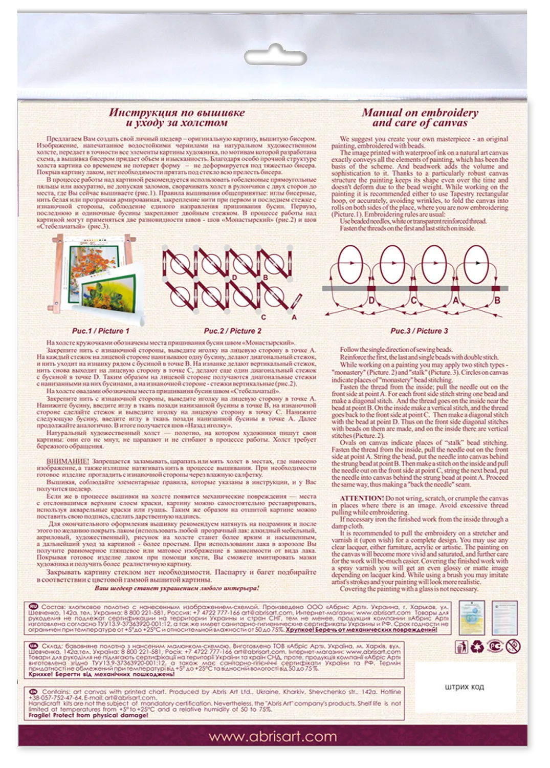 In each carefully assembled box Mid-sized bead embroidery kit Lace balls (Winter tale) after purchase and delivery you will find: a large piece of natural art canvas with a printed image-scheme (fabric for embroidery) larger than the size of the picture - 200 x 200 mm. - with enough stock to make it convenient to embroider and design the finished picture! The world's best beads Preciosa Ornela (Czech Republic), with "stock" - more than 2030 beads, high-quality bead needles from Japan , and most importantly - detailed instructions, the scheme for beadwork with a key, specially developed by our designers for each plot separately and already applied to the canvas! (4 colours), Dimensions 20*20cm / 7,87*7,87in. Made in Ukraine.