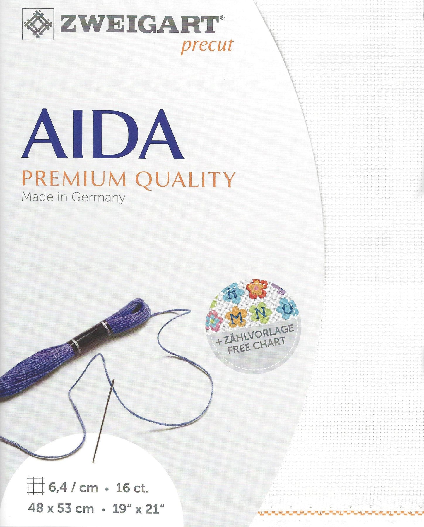 Zweigart AIDA Canvas 16 count, bleached 100% Cotton. Dimensions 48*53 cm/ 18.9*20.87in