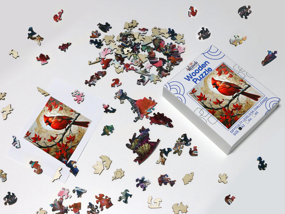 Red Finch - Jigsaw Wooden Puzzle by Wizardi F07N9-8
