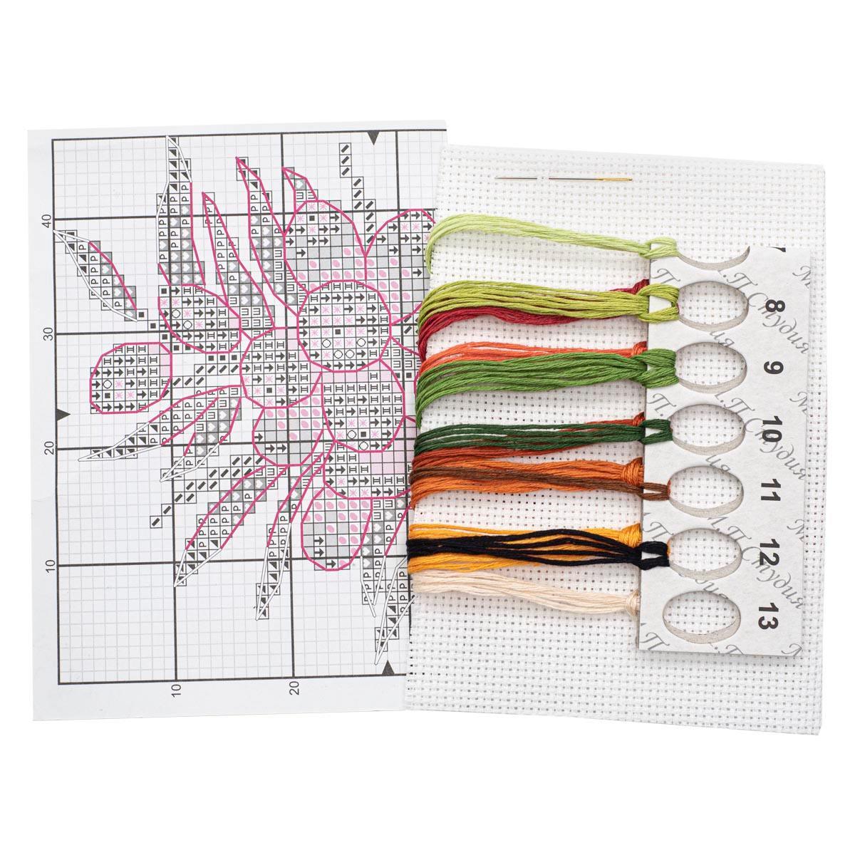 Kit contains:Aida canvas (count 14), mouline threads (12 colours), needle and instruction. Dimensions 12*10 cm.