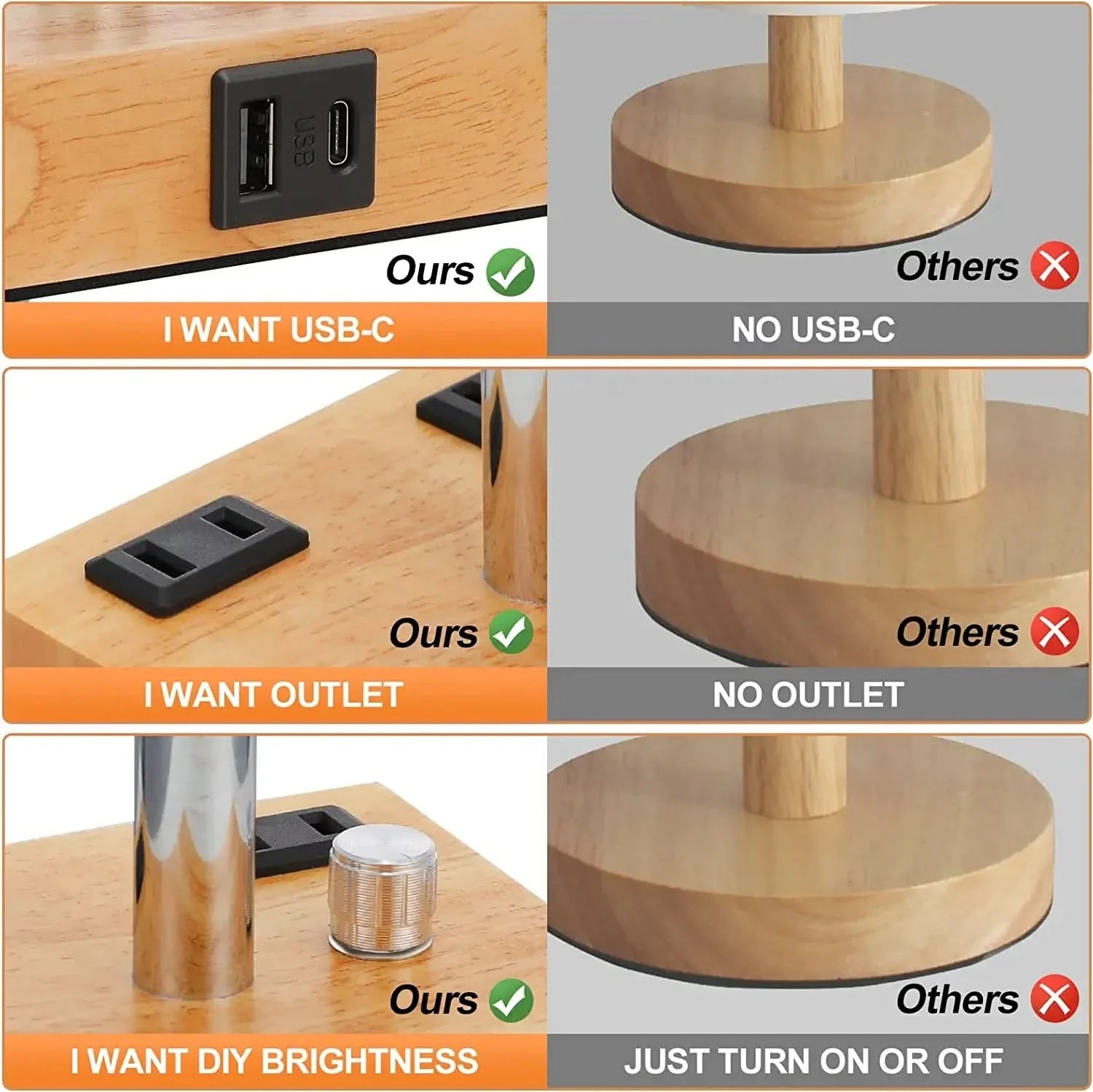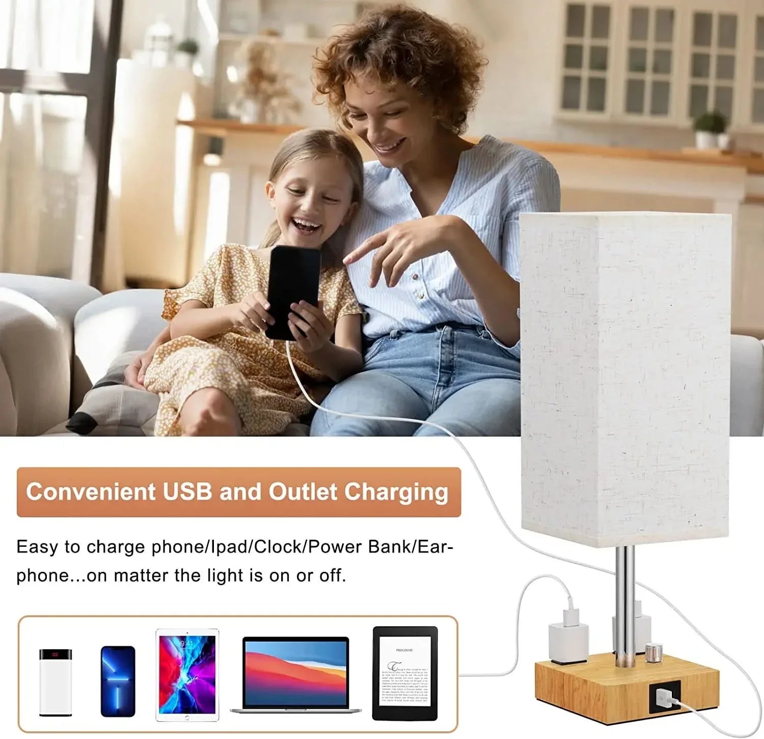 Upgraded Bedroom Lamp with USB C+A Charging Ports & 2 AC Outlets】USB table lamp for bedroom built-in USB C & USB ports (5V/2.1A) and 2 AC Outlets (120V) charger for fast charging, can charge your phone, kindle, tablet, watch and other devices no matter the side lamp is on or off.