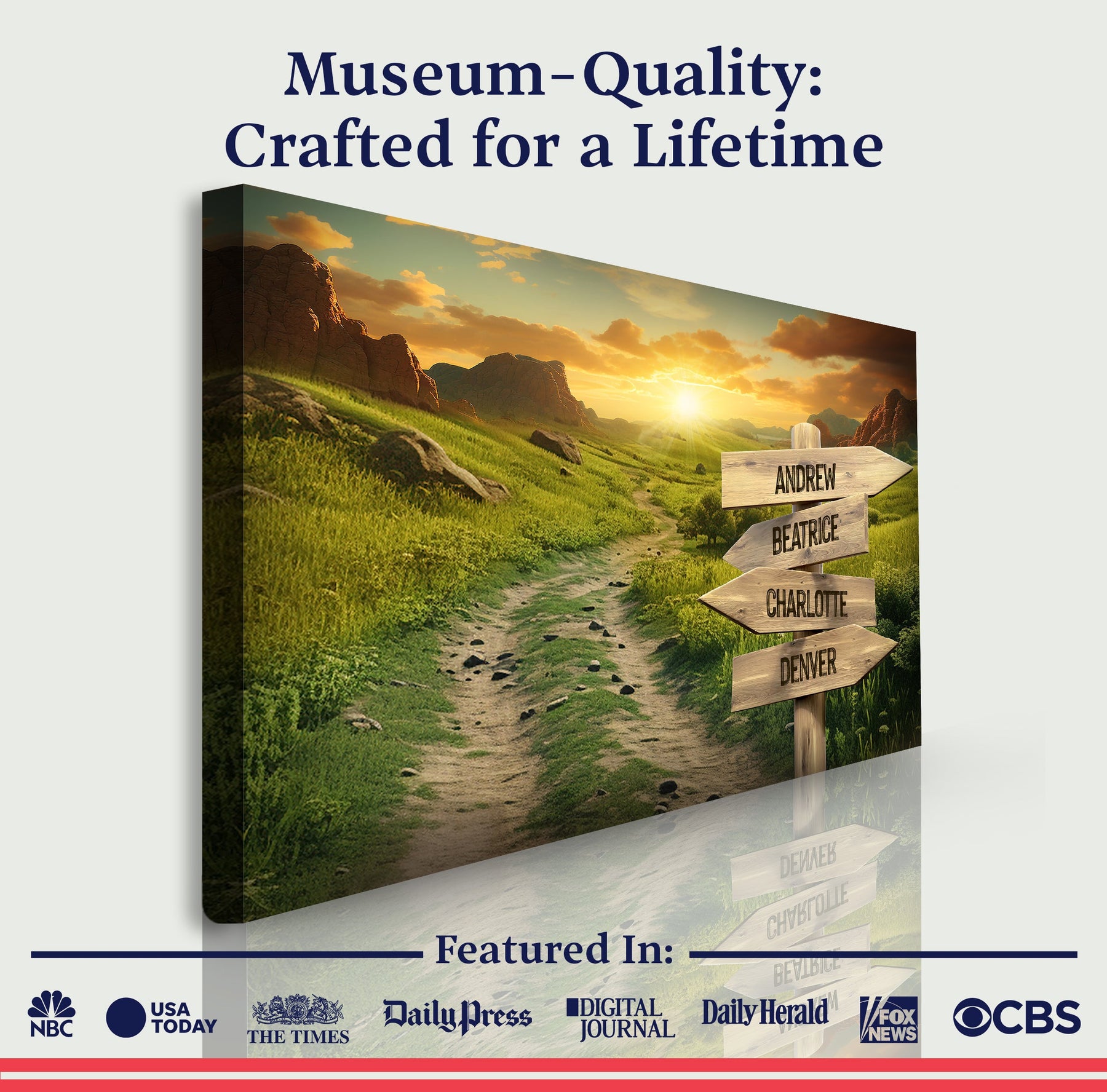 You can customize the Family Names canvas print with your choice of words and names, as well as the image you want in the background. The fonts used and the color scheme are also customizable, so you can have something entirely different.