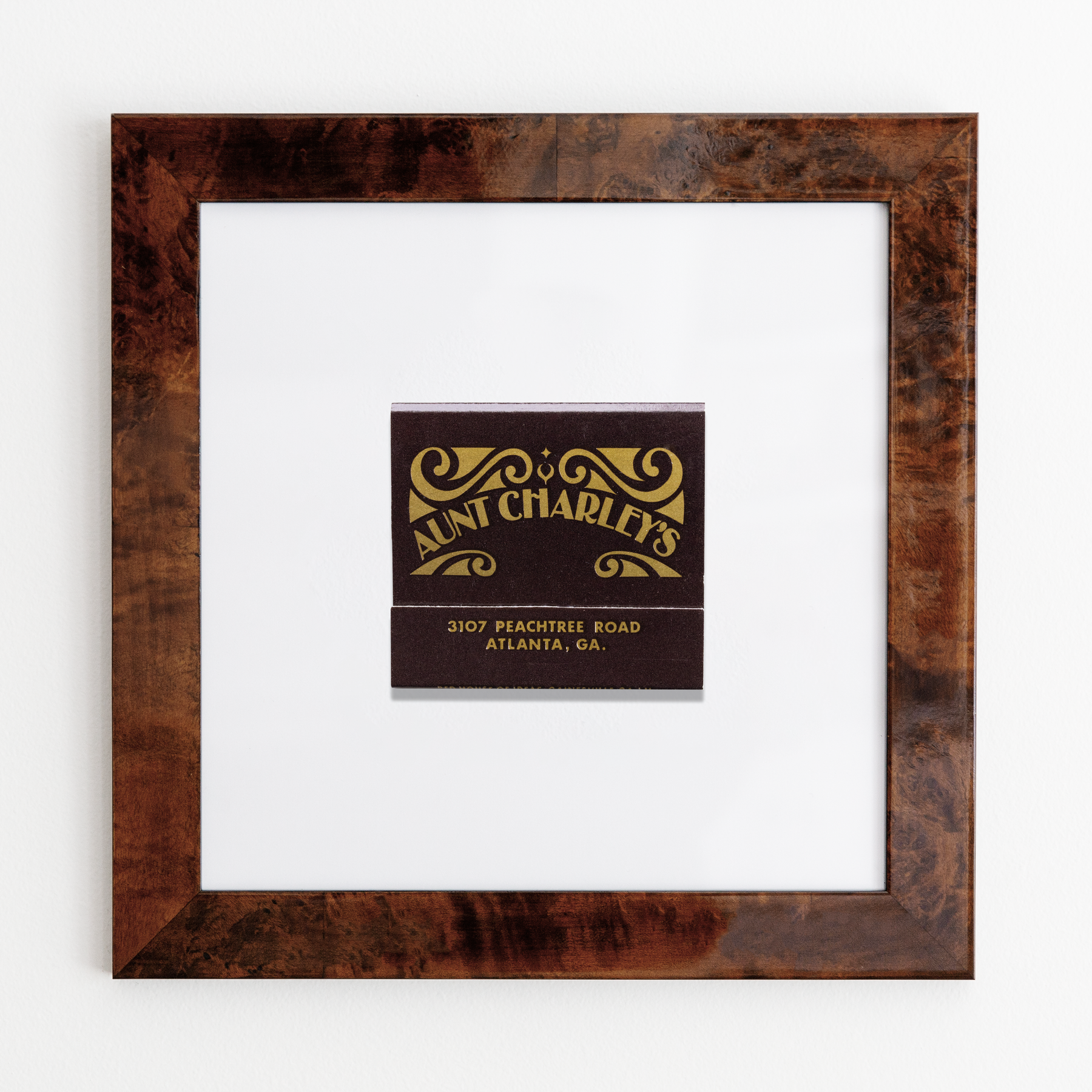 The Aunt Charley's (Front) print showcases an iconic matchbook design.