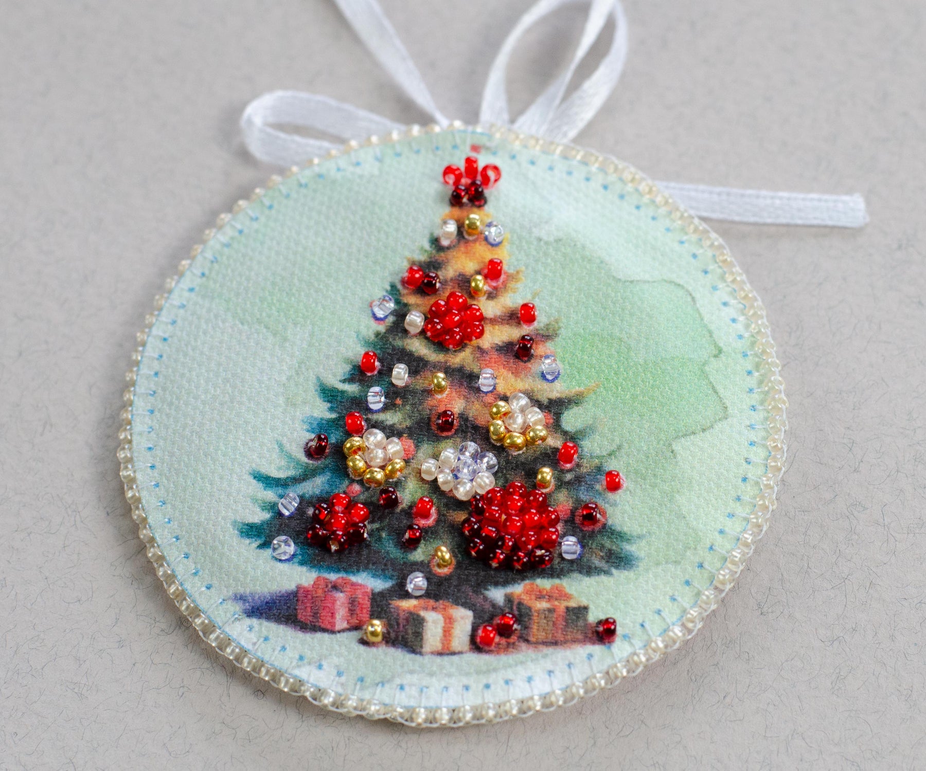 The set is complete with a piece of natural artistic canvas with an applied image-scheme size 160*100mm and additionally threads for embroidery with beads, a sealant and a decorative tape.