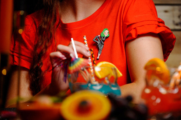 Brooch inspired by the fun and chilling character Beetlejuice.