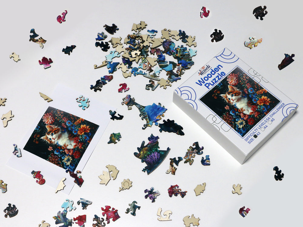 Cat in Flowers - Jigsaw Wooden Puzzle by Wizardi F07N9-16