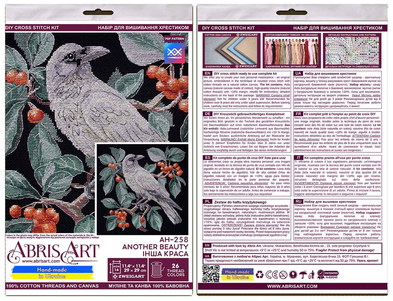 In each carefully assembled box Cross-stitch kits Another beauty (Deco Scenes) after purchase and delivery you will find: a large piece of canvas (embroidery fabric) larger than the size of the picture - 290 x 290 mm. - with enough margin to comfortably embroider and decorate the finished picture! As well as a special needle for cross-stitching and all the necessary threads (floss) - 26 colors on a convenient organizer, of course - with a margin, because you can embroider with a cross in different ways. And most importantly - detailed instructions, a cross-stitch pattern, specially designed by our designers for each set separately!