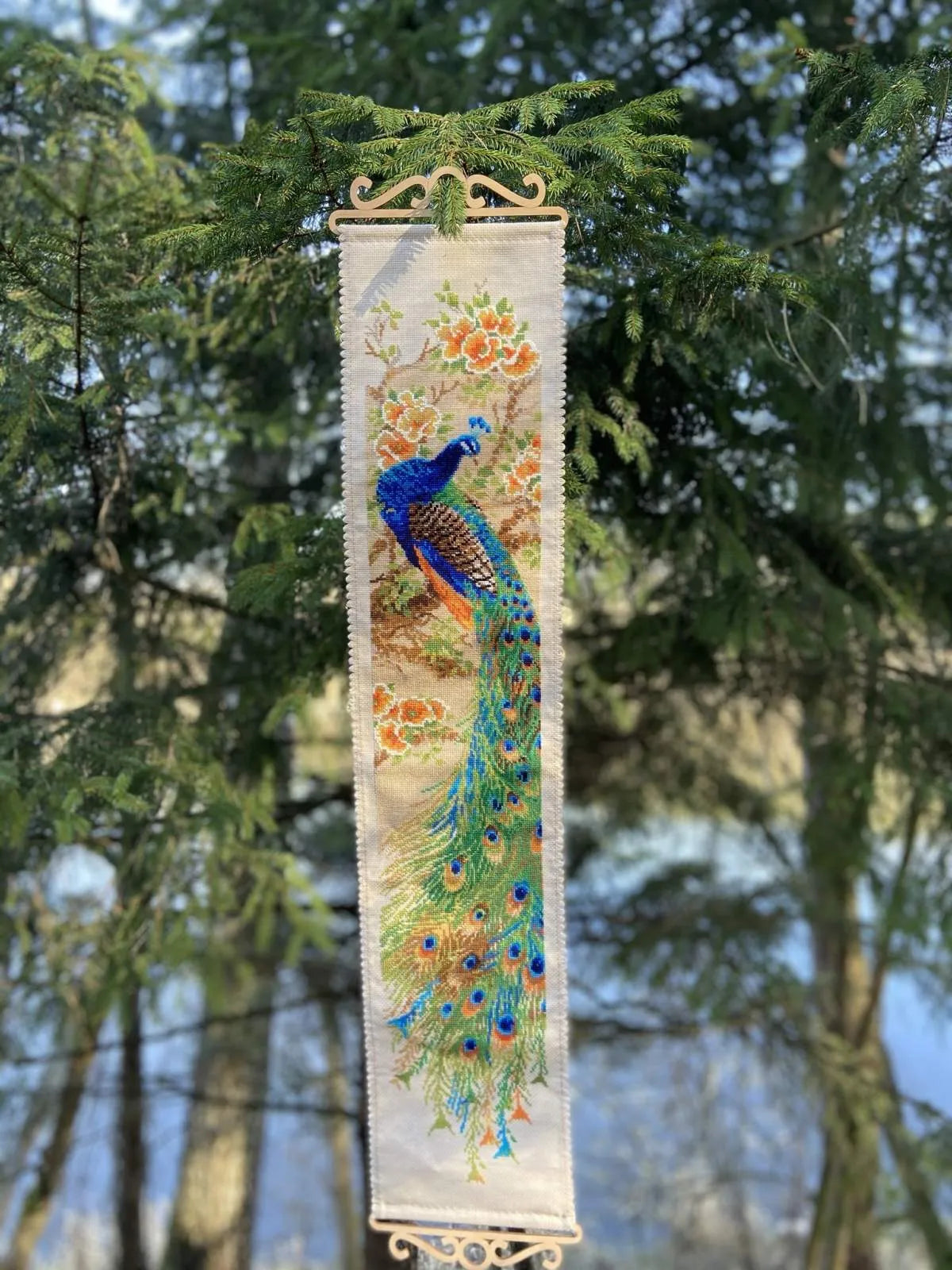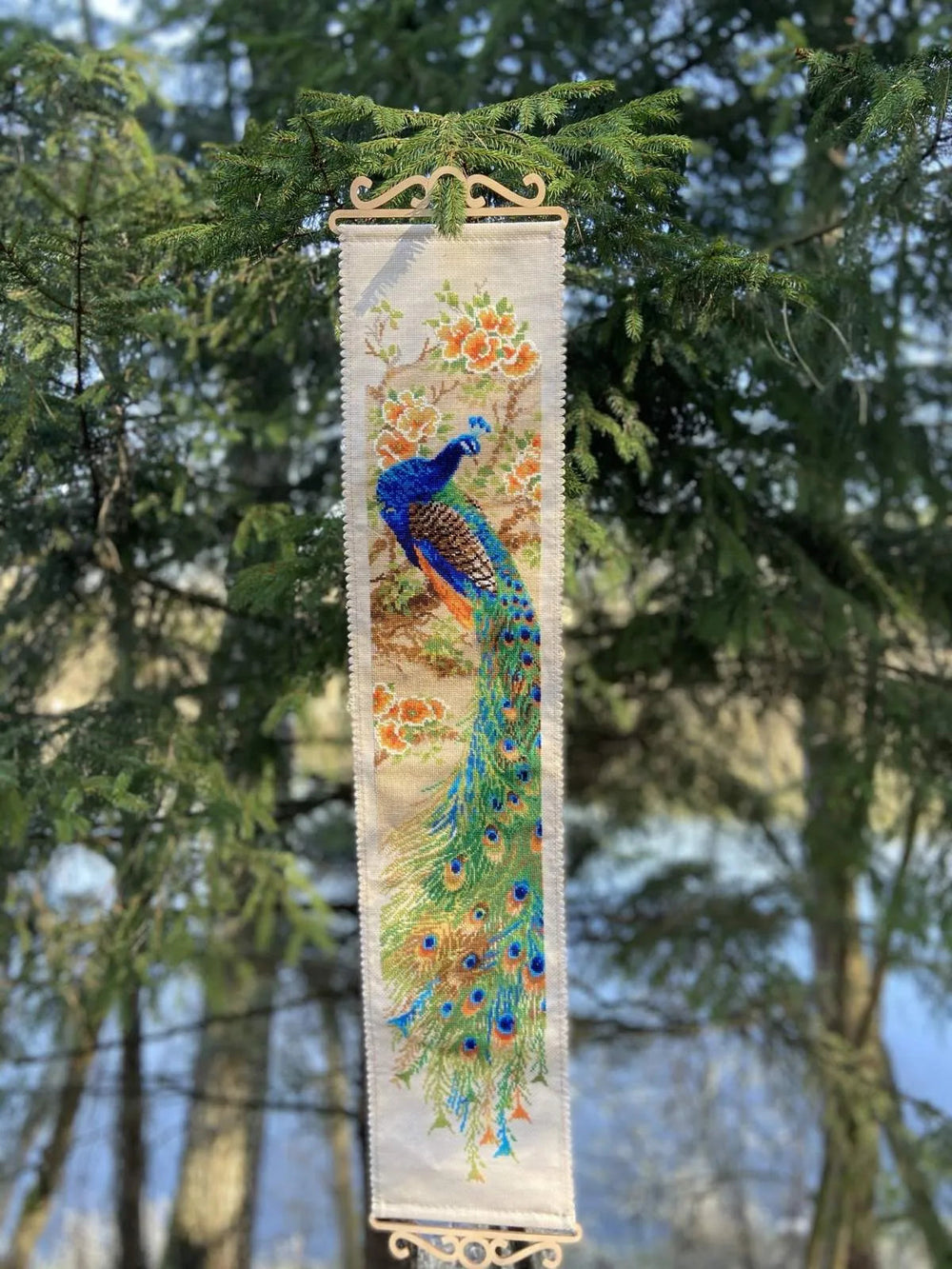 Kit contains: Canvas Zweigart 14ct. beige AIDA, treads: wool/acrylic and Anchor stranded cotton 22 colors. Instruction, color chart, needle 1 type. Dimensions 19*90cm/7,48"x35,43"inches.