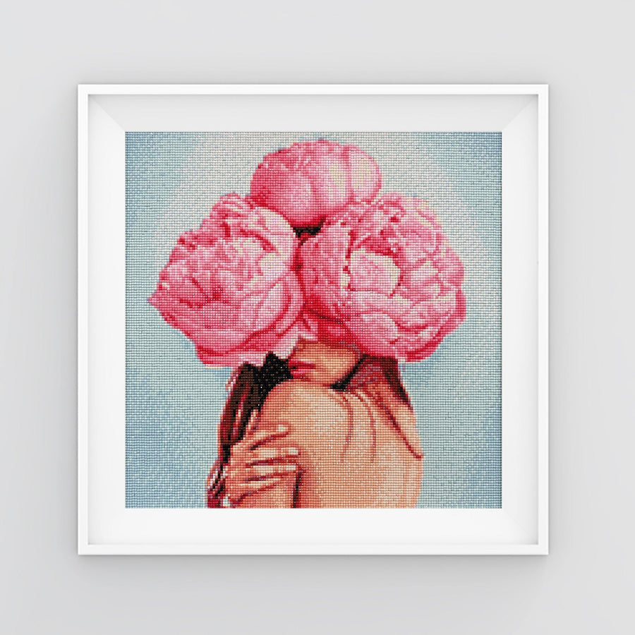 The diamond painting kit Crafting Spark contains: high quality self-adhesive canvas with printed detailed design chart; tweezers, stylus, dry glue pad and two craft trays; reusable zip lock bags with pre-sorted square acrylic diamonds in extra quantity.