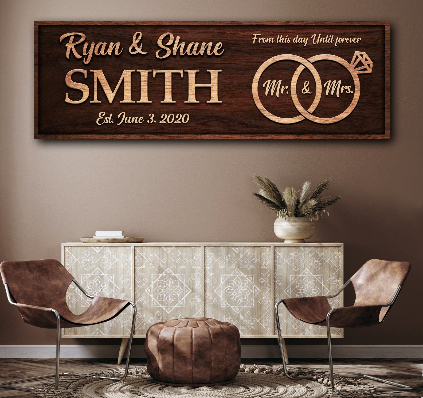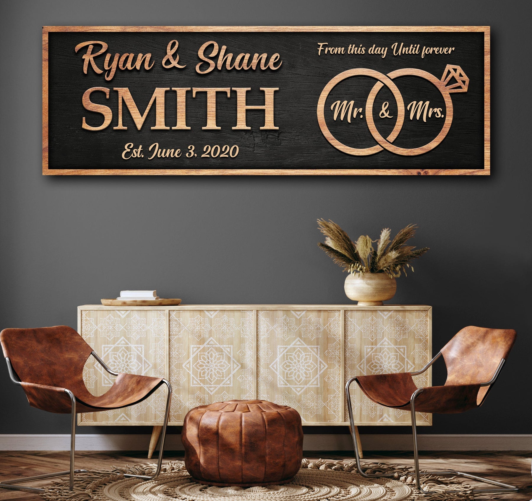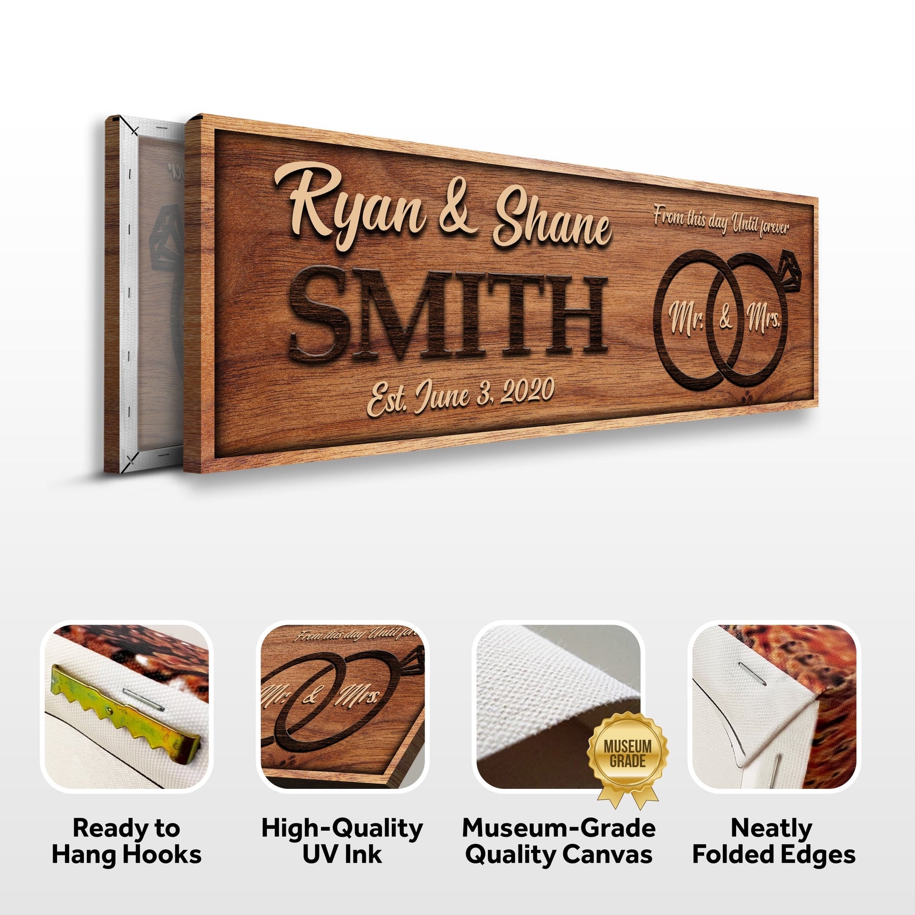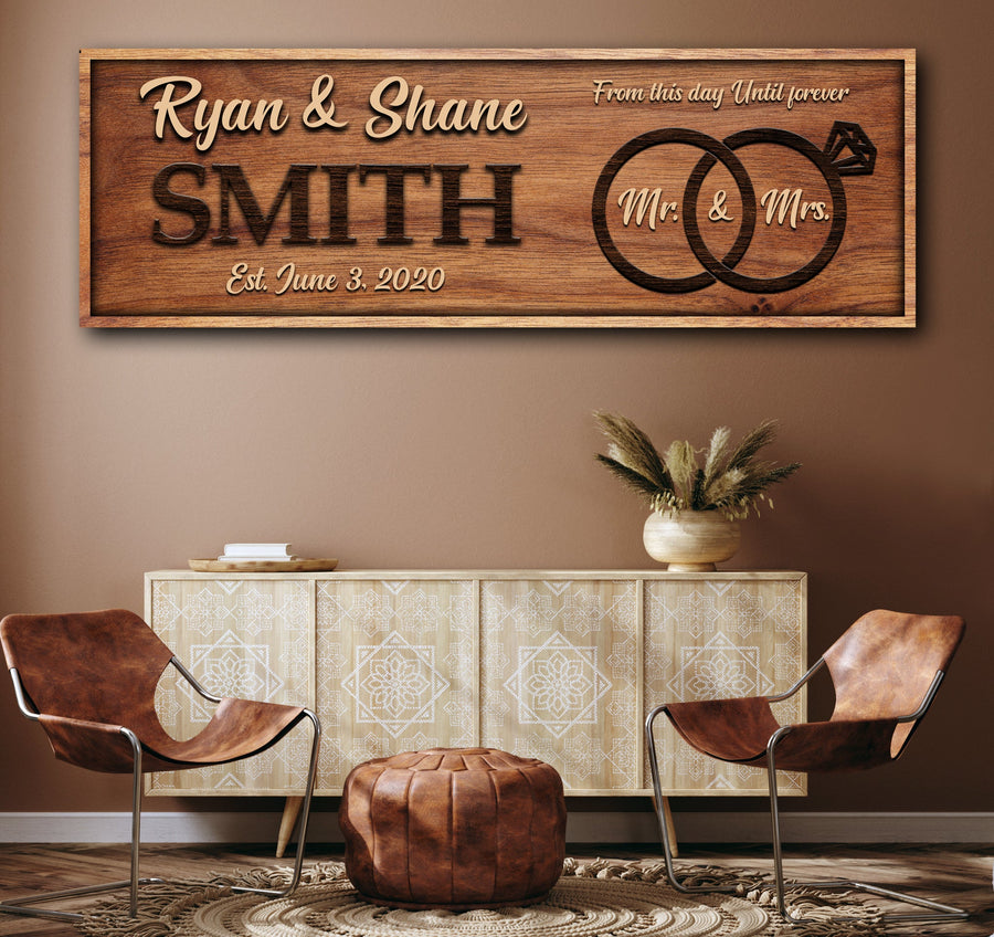 Make your wedding day or anniversary even more special with a customized From This Day Until Forever sign. This beautiful canvas wall art is personalized with your names and the date of your special day, making it a truly unique and memorable piece.