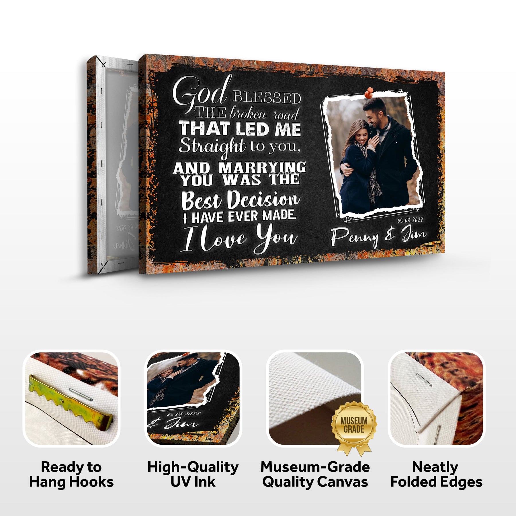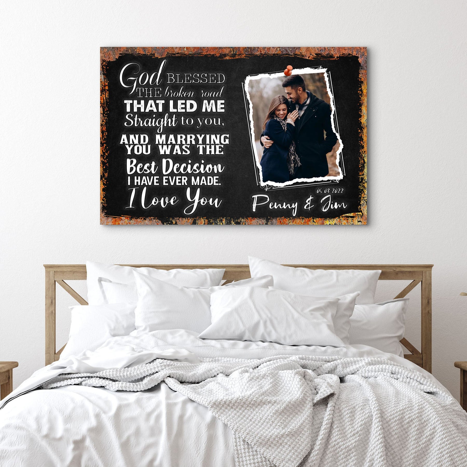 Introducing the God Bless the Broken Road that Led Me to You sign from Tailored Canvases! Remind your visitors that every challenge in life leads to a better path with this chic and striking God Bless the Broken Road that Led Me to You wall art. This excellent God Bless the Broken Road that Led Me to You canvas poster is made of high-quality materials and will look fantastic in your house. To add some elegance and motivation, hang it in your living room, bedroom, or workplace. This God Bless the Broken Road that Led Me to You canvas sign is a terrific option for home décor if you design one for yourself or a friend and present it as a gift!