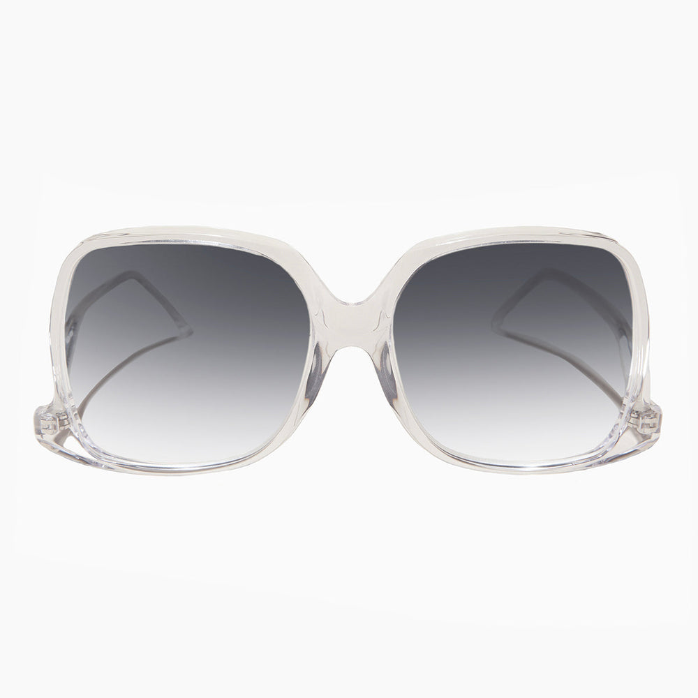 A hybrid of granny-chic and Farrah Fawcett foxiness, Mia boasts a bold, oversized frame that belies its lightweight fit.  Upside-down temples support the chunky frame to complete the retro 70s vibe.  Choose from 4 far-out lens gradient colors.
