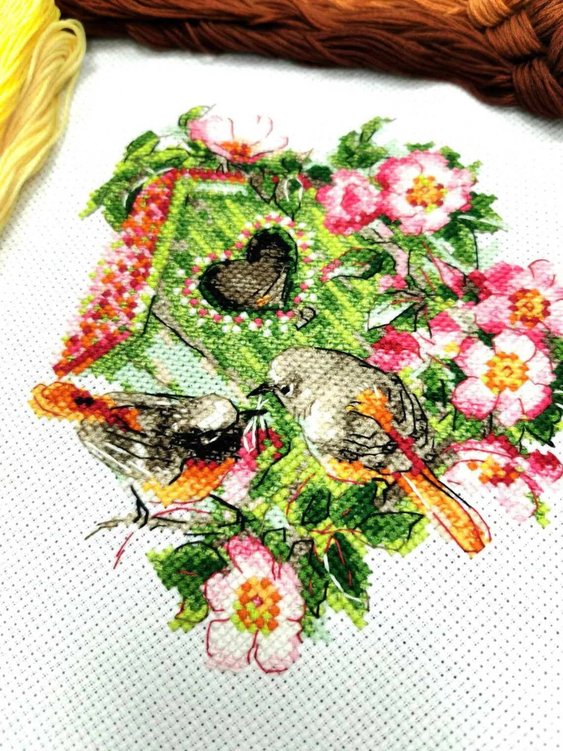 Kit contains: Canvas Zweigart 14ct. white AIDA, treads: Anchor stranded cotton 14 colors. Instruction, color chart, needle 1 type. Dimensions 18*18cm/7" x 7"inches.