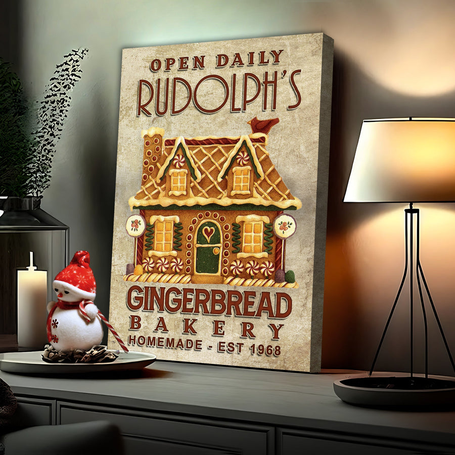 Nothing evokes memories of winter mornings, steaming mugs, and the wafting aroma of baking gingerbread like our Homemade Gingerbread Bakery Sign. A celebration of homely traditions and the art of baking, this canvas sign is not just a decorative piece but a journey down memory lane.