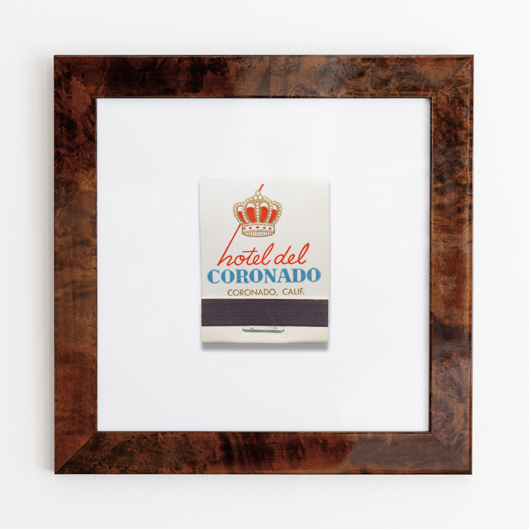 The Hotel del Coronado print showcases an iconic matchbook design.