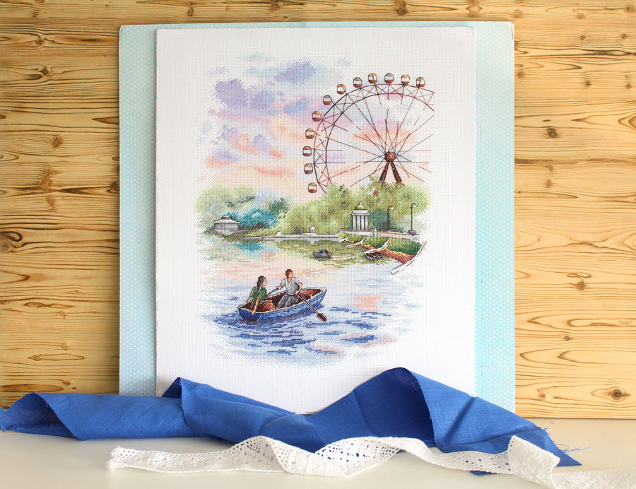 Kit contains:Aida canvas (count 18), mouline threads (33 colours), needle and instruction. Dimensions 13,39x9,84 inches / 34x25 cm