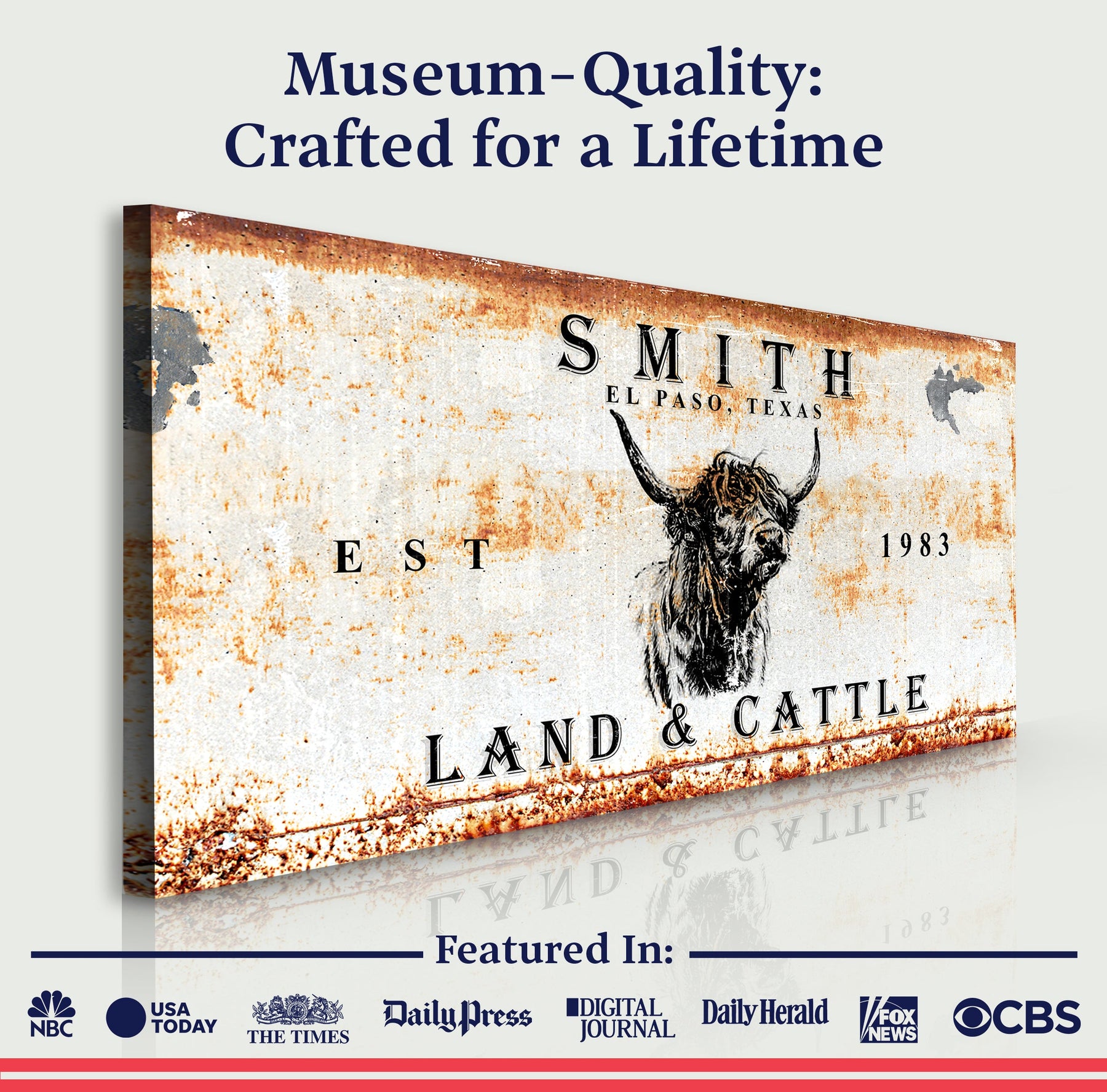Land and Cattle rustic sign is the perfect way to add a touch of old country charm to your home. With its old country ambiance, this rustic wall art will surely add some wild west atmosphere to any room. With its old country ambiance, this rustic canvas wall art will surely add farmhouse charm to any room.