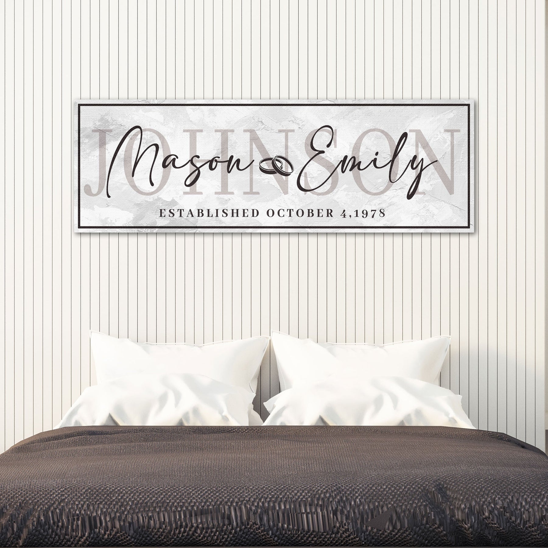 Immerse yourself in the enchanting beauty of this Last Name Wedding Gift Wall Art as it showcases your last name in an exquisite font, accompanied by a graceful motif that symbolizes unity and togetherness. Whether you're looking to commemorate your own wedding or searching for the perfect gift for a loved one, this personalized canvas sign is sure to leave a lasting impression.