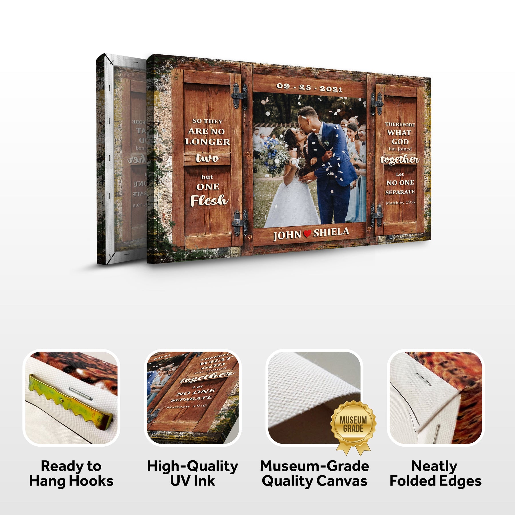 If you’re looking for a wedding gift that will make your newlywed friends or family members feel truly loved, look no further than this Matthew 19:6 - So They Are No Longer Two, But One Flesh Sign.