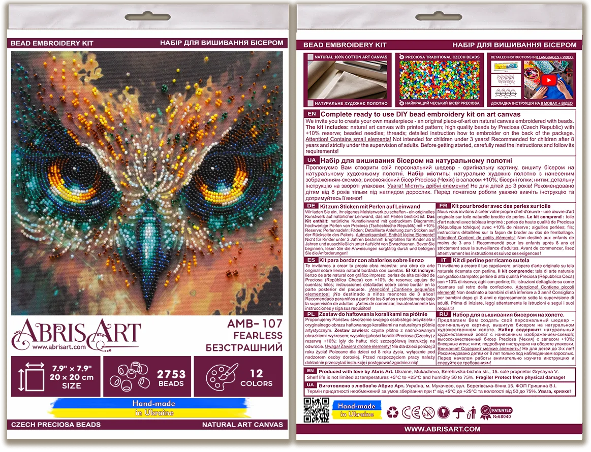 In each carefully assembled box Mid-sized bead embroidery kit Fearless (Deco Scenes) after purchase and delivery you will find: a large piece of natural art canvas with a printed image-scheme (fabric for embroidery) larger than the size of the picture - 200 x 200 mm. - with enough stock to make it convenient to embroider and design the finished picture! The world's best beads Preciosa Ornela (Czech Republic), with "stock" - more than 2753 beads, high-quality bead needles from Japan , and most importantly - detailed instructions, the scheme for beadwork with a key, specially developed by our designers for each plot separately and already applied to the canvas!