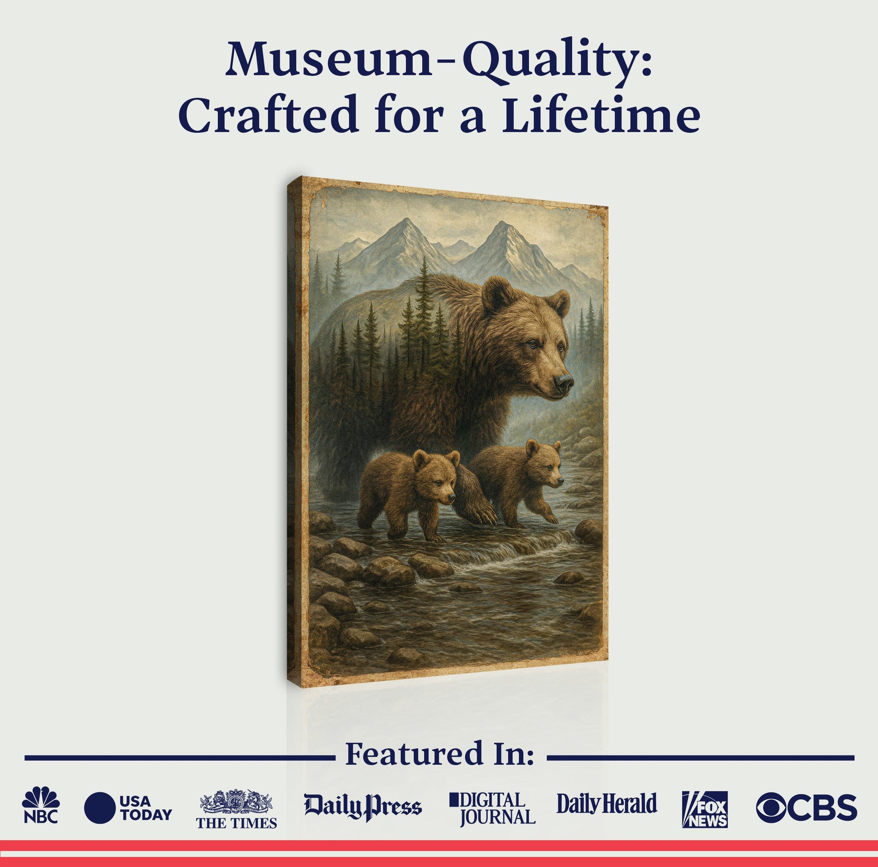Mother Bear and Cubs Crossing Double Exposure Wall Art