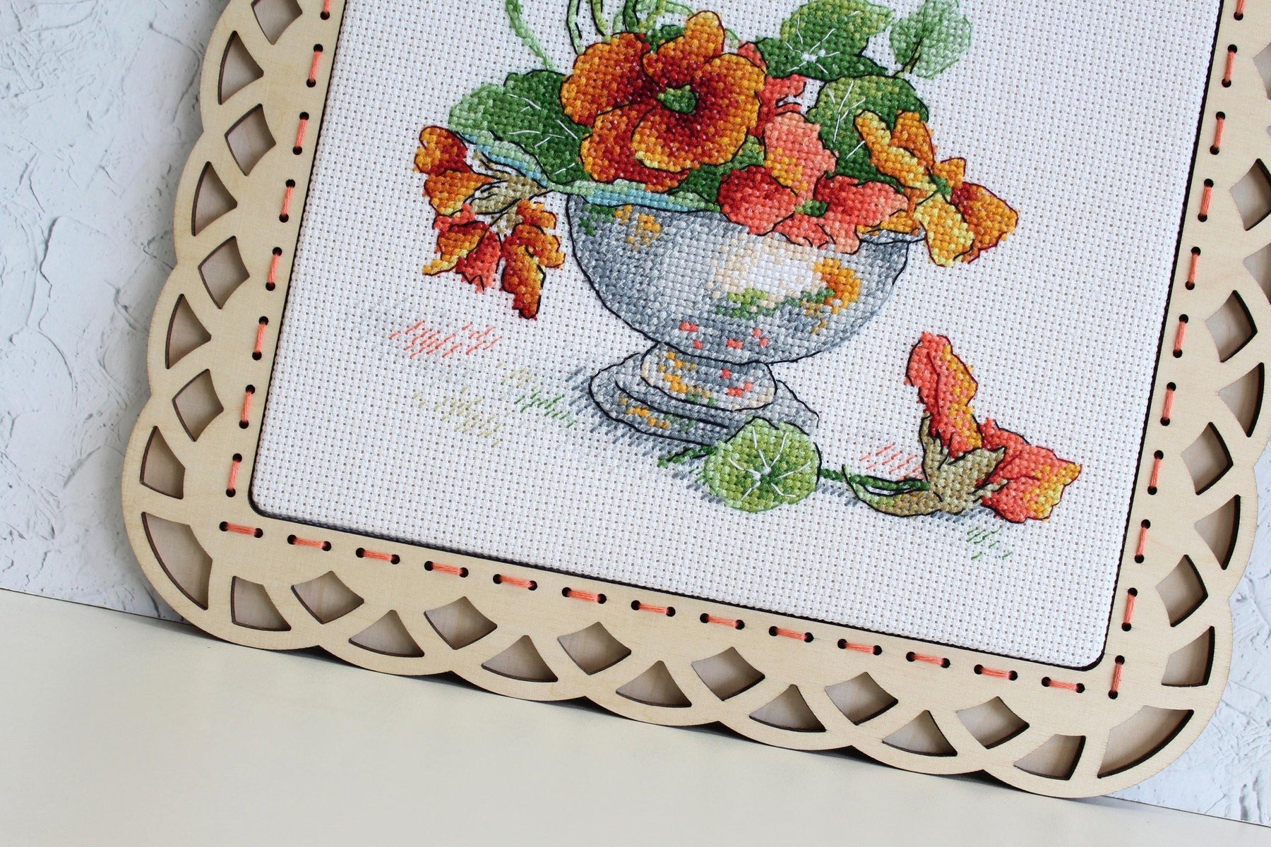 Kit contains:Aida canvas (count 14), mouline threads (21 colours), needle and instruction. Dimensions 18*19 cm.