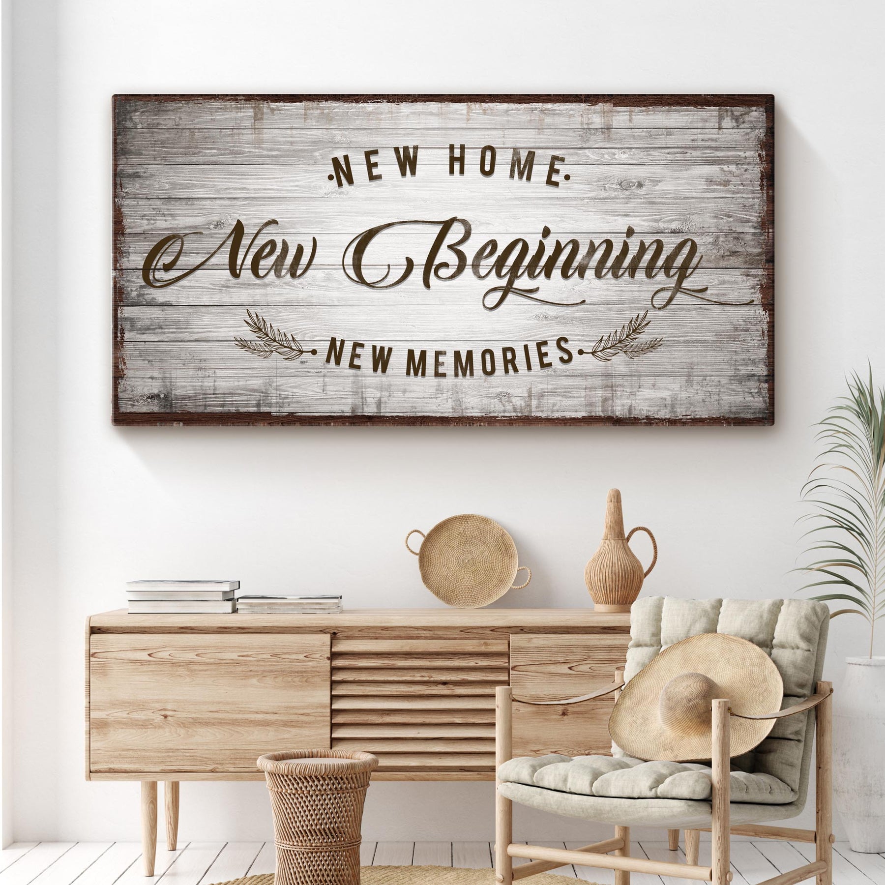 A brand-new house is a blank canvas, a fresh start, and a new chapter. It's an opportunity to make a new beginning, new memories, and an impact on the world. What better way to mark the start of this new chapter in your life than with a lovely canvas print of "New Home, New Beginning"? Our New Home, New Beginning sign is ideal for giving your new room a unique touch. This contemporary yet rustic New Home, New Beginning wall art is made of high-quality canvas.