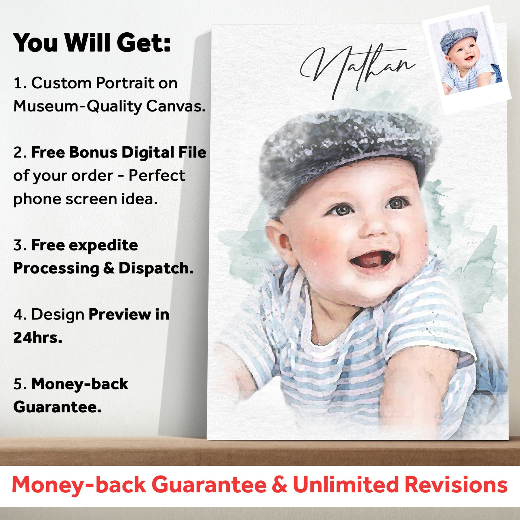 All you need to do is provide us with your favorite photo (via the upload button on this page, or via email instead), and we'll have our team create the most beautiful portrait you've ever laid your eyes on. It'll be like turning your favorite moment in time into a beautiful masterpiece to be shared with loved ones FOREVER.